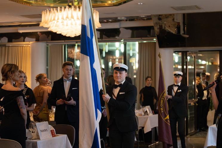 Tilaisuus avattiin perinteitä kunnioittaen lippujen saapumisella sekä Finlandia-hymnillä, jonka jälkeen kuulimme puheenjohtajan puheen. Seuraavaksi ääneen pääsi Mikko Ruuska, jonka viihdyttävän puheen jälkeen pääsimme maistamaan alkuruokaa Alkuruokana lihamenun nautiskelijat saivat lautasilleen savulohiterriiniä sekä mätimoussea pikkelöityjen mummonkurkkujen kera Alkuruoka sai pöytäseurueelta hyvät arviot, lohiterriinin koostumus oli uudenlainen elämys, mutta maku erittäin herkullinen