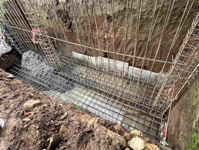 A combined footing is a type of foundation that supports two or more columns by sharing a single, continuous concrete slab beneath them. In this case, 8 dia. re-bar are used in the footing in 6” center to center spacing. PCC layer were already laid and column with development length and reinforcement were tied on the PCC layer and formwork were being prepared and after it, concrete mixture were prepared and laid over the formwork for the combined footing.