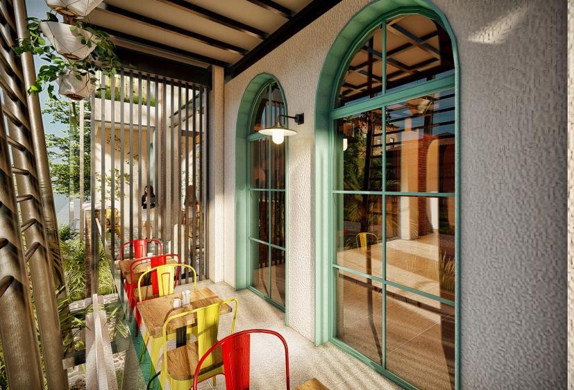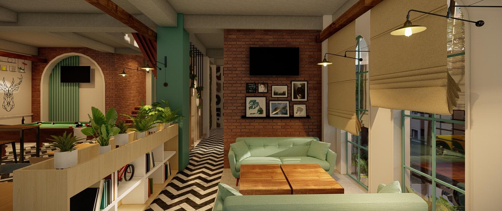 In my vision for this retro-themed interior, I've sought to create a seamless connection between the interior and the captivating brick facade of the exterior. To achieve this, I've meticulously incorporated elements such as graceful arches, w h i c h e l e g a n t l y a d o r n t h e handrails, walls, and partitions, mirroring the aesthetic charm of the arched windows on the outside. Collaborating closely with a seasoned architect, we've made thoughtful choices in materials, opting for the enduring appeal of metal accents that blend effortlessly with the warm, rustic character of sal-wood. For the color scheme, I've personally chosen mint green, creamy yellow, and pristine white to evoke a sense of nostalgia and sophistication throughout the interior. This project reects my dedication to creating a cohesive and visually pleasing living space that seamlessly marries retro aesthetics with modern comfort and functionality.