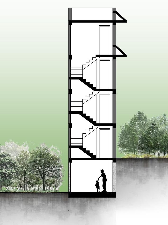 This project is driven by the specic requirement of our client, who desires a residence of a fourstory structure, with the ground oor reserved for a shop space. The driving force behind this design is the client's heartfelt desire for spaciousness. Given the substantial number of family members, the paramount consideration is the provision of ample room for everyone's comfort and convenience Additionally, because of the two contour levels on the site, the client wants the home entrance to be located on the upper level, while the entrance to the shop will be situated on the lower level.
