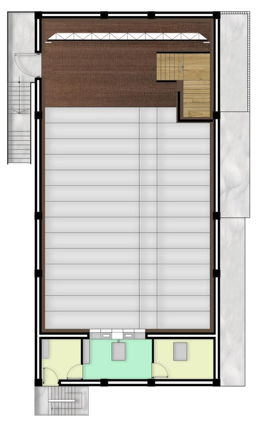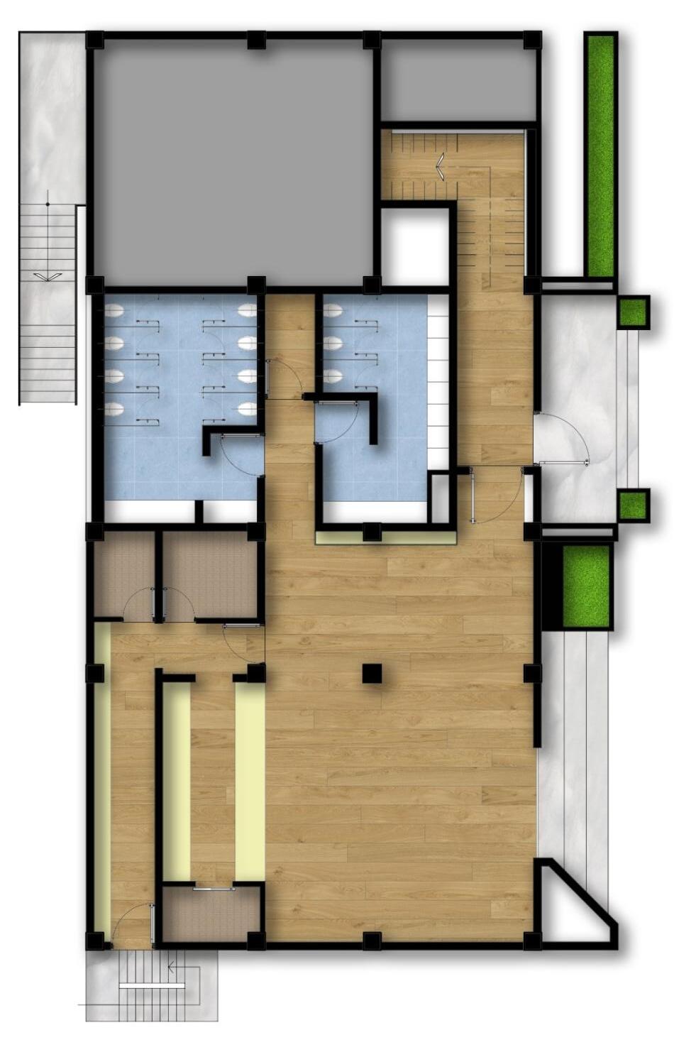 The second oor of the b u i l d i n g i s p r i m a r i l y dedicated to a versatile banquet area designed to host various events such as parties, conferences, and meetings. This spacious hall is equipped with a separate kitchen facility to ensure the preparation of delicious f o o d f o r g u e s t s Conveniently located in the northern direction, there are restroom facilities available, along with two adjacent small storage rooms for a d d e d c o n v e n i e n c e . Additionally, a separate section of the building is designated for a spa, providing a serene and relaxing environment for g u e s t s t o u n w i n d a n d rejuvenate.