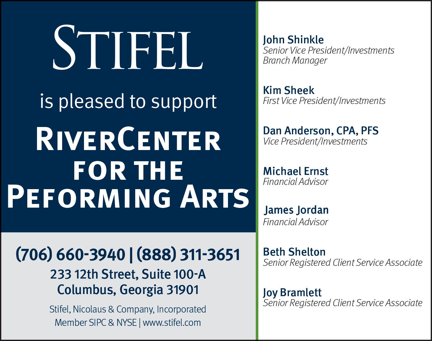 Thank you to our Corporate Sponsors! As a 501(c)3 organization, RiverCenter depends on the generosity of corporations to help present world-class artists and offer varied educational opportunities. RiverCenter for the Performing Arts offers one-of-a-kind, tailor-made opportunities for businesses and organizations to invest in the arts and arts education, while increasing visibility as a philanthropic leader in the Columbus region. Performances at RiverCenter would not be possible without the goodwill of our sponsors. A wide range of sponsorship opportunities are available, including theatre productions, events, special projects, education and outreach initiatives and can be customized to meet sponsors’ specific interests and needs, beginning at $1,500.