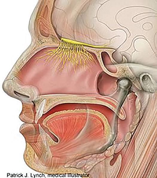 An aroma is basically minuscule droplets in the air that we breathe in intentionally or get wafted up your nostrils just on general air currents. These droplets or molecules pass over a special patch in your nose called the olfactory epithelium, made up of very specialized nerve cells that can interpret what that “smell” molecule is. The message goes straight up the olfactory nerve to the brain which then disseminates the information to whatever part of the body it sees fit. This is all done in a fraction of a second. The olfactory nerve is indeed the fastest route to the brain that we have.