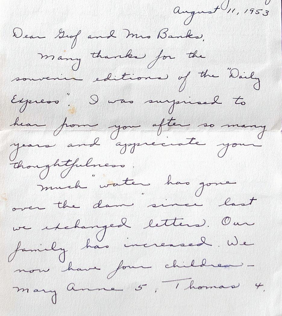 Most of their conversations have revolved around their daily lives and families. However, in one of their early letters, Banks remembers sending Byrne a copy of a British paper in 1953 that had Queen Elizabeth II’s coronation on the front of it.