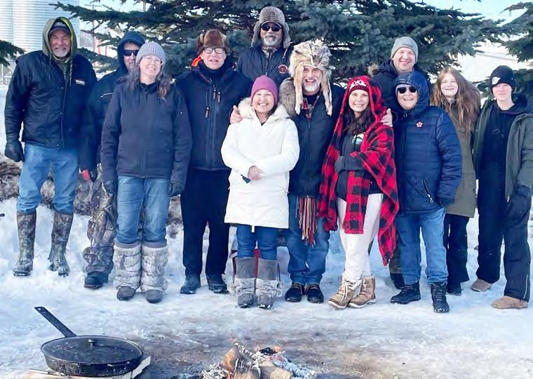 Celebrating Louis Riel Day Brock Anderson, Doug and Robin Crisps, Ed Mackay, Lance Anderson, Sabrina Bornkessel, Minister Will Goodon, Georgette Church, Joan Church, Sean Branconnier, Teyah Branconnier and Hayden Saltesz.