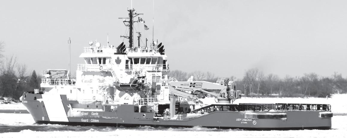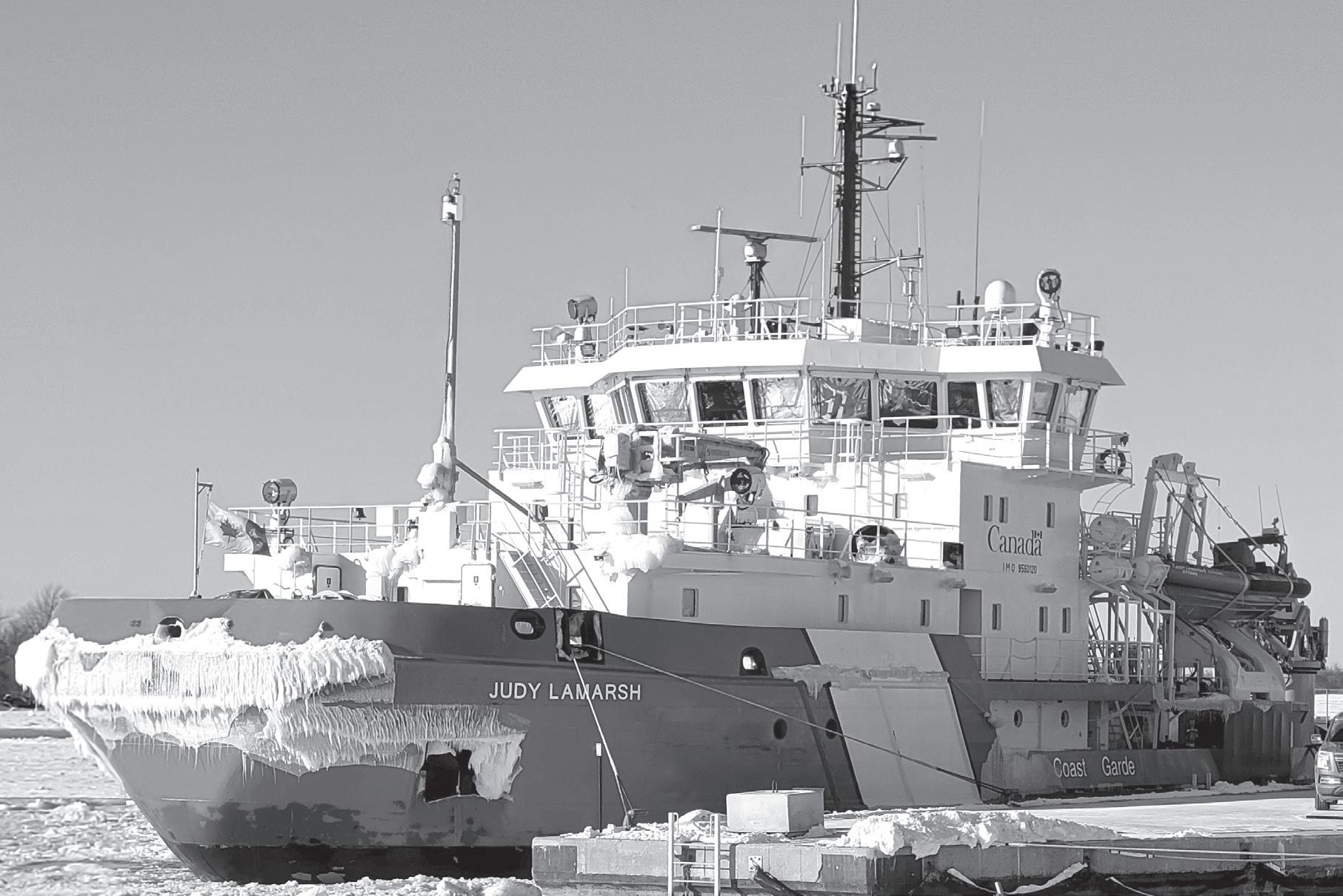 The icebreaker “Judy Lamarsh” stopped at the Canadian Coast Guard base in Amherstburg Feb. 1. According to local resident Terry Hall, who sent in two of the photos, it was originally built in Romania as an icebreaking tug for Kazakhstan, later registered in Turkmenistan, and acquired by the Canadian government in 2021 to be named for the former federal Cabinet Minister Judy Lamarsh. It recently underwent a $34.3 million refit. Dave Cozens, who also submitted photos seen here, said the ship arrived about noon Feb. 1 and departed about 7:30 p.m., heading towards Lake Erie. Cozens said the ship’s approach to the dock was very unusual, heading up the river from Lake Erie, she made a U-turn and backed into the dock facing downstream. It was built in 2010 as a shallow draft icebreaking tug for the Caspian Sea oil fields, capable of breaking ice about 90 cm (35 inches) thick.