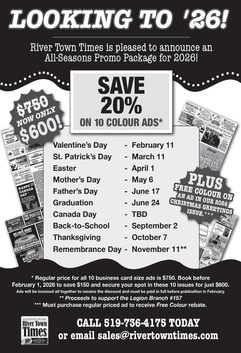 CALL 519-736-4175 OR EMAIL sales@rivertowntimes.com to book your spot!