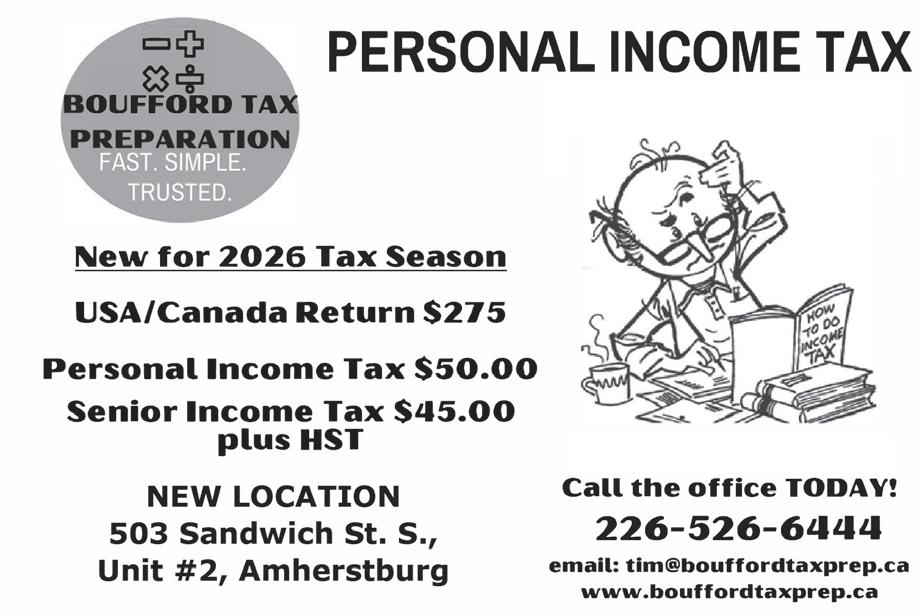 | P.O. Box 115, Essex, ON N8M 2Y1 | Ph: 519-776-4268 | Email: contact@essexfreepress.com 9am-2pm, Fri. 9am-1pm, Closed Sat. & Sun. Please review your proof carefully & return with signature of approval, and/ or indication of changes required, by 1:00 p.m. Friday prior to publication. Your ad will publish in 11,000 copies of The Essex Free Press.