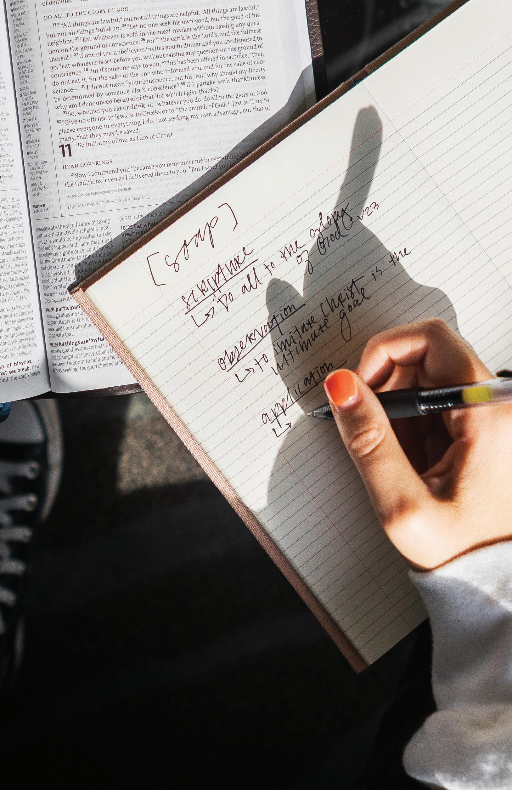 Through SOAP, you will learn more about who God is, His love for you, and His heart for the world. By reading the Bible daily, you will discover next steps, keep on the right path, and be inspired as you follow Jesus.