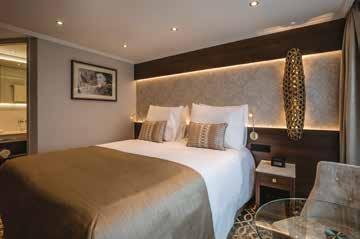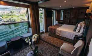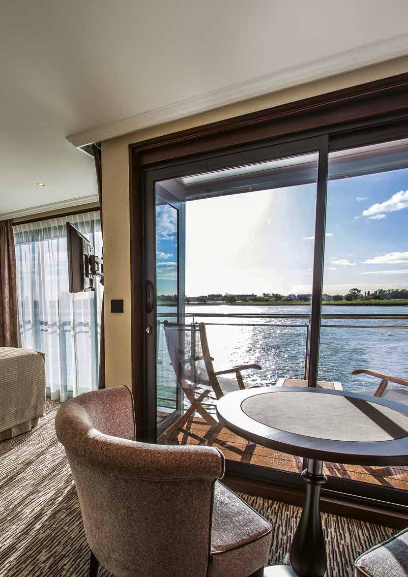Relax in a spacious cabin or suite with beautifully appointed en-suite bathrooms and river views.
