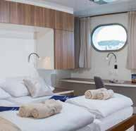 Upper Deck – Home to spacious standard cabins, you’ll enjoy views from the large panoramic windows. Your cabin comes with double or twin beds, air conditioning, mini-bar, safe, satellite television and en-suite bathrooms with shower and hairdryer.