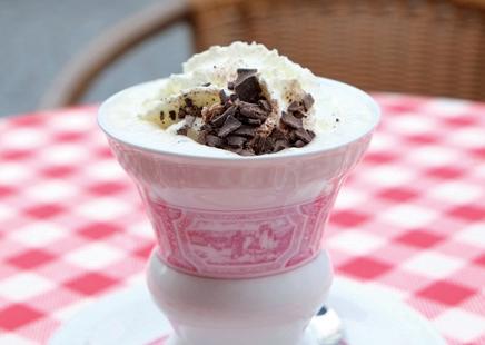 Rüdesheim co ee is flambéed with brandy before adding whipped cream.