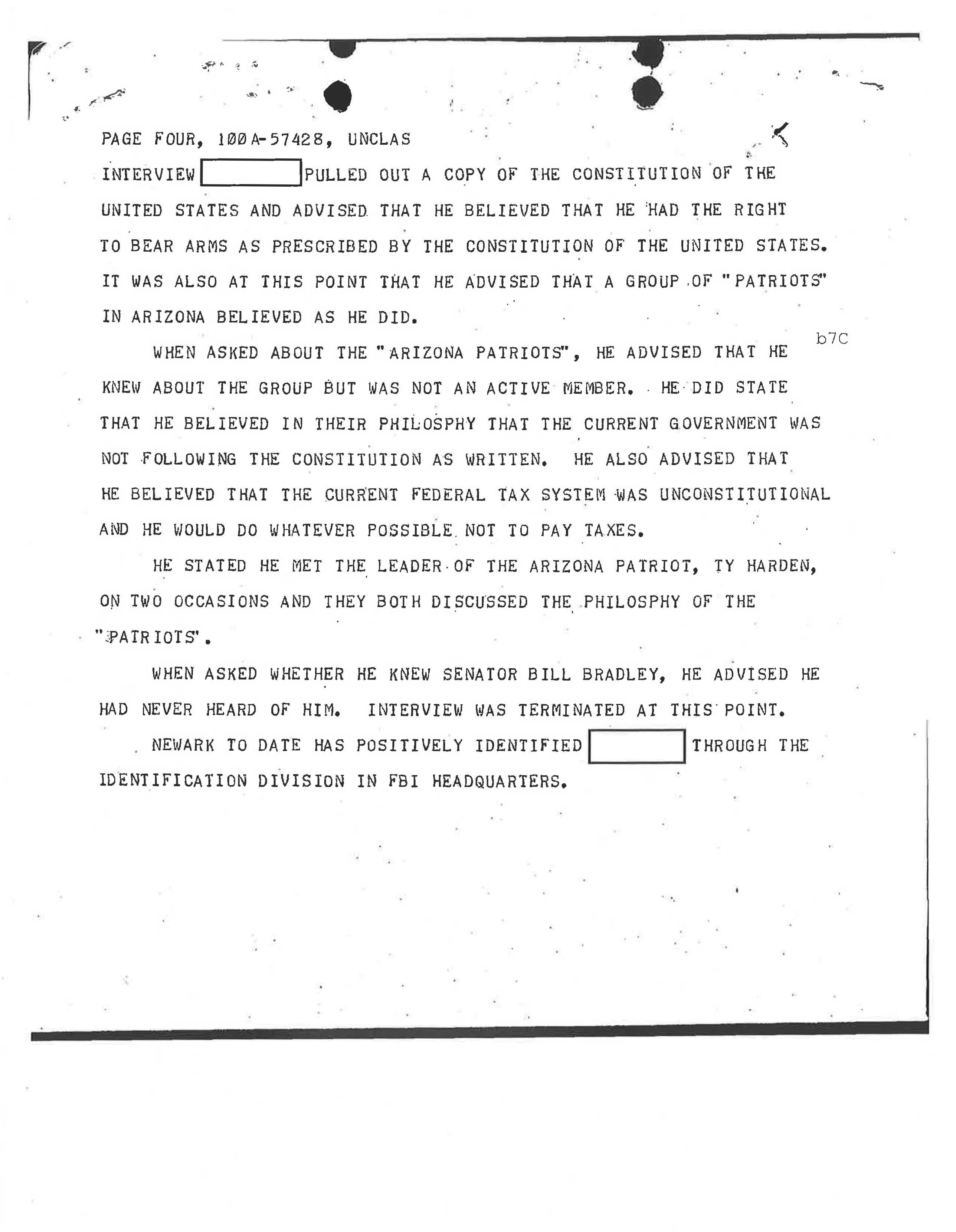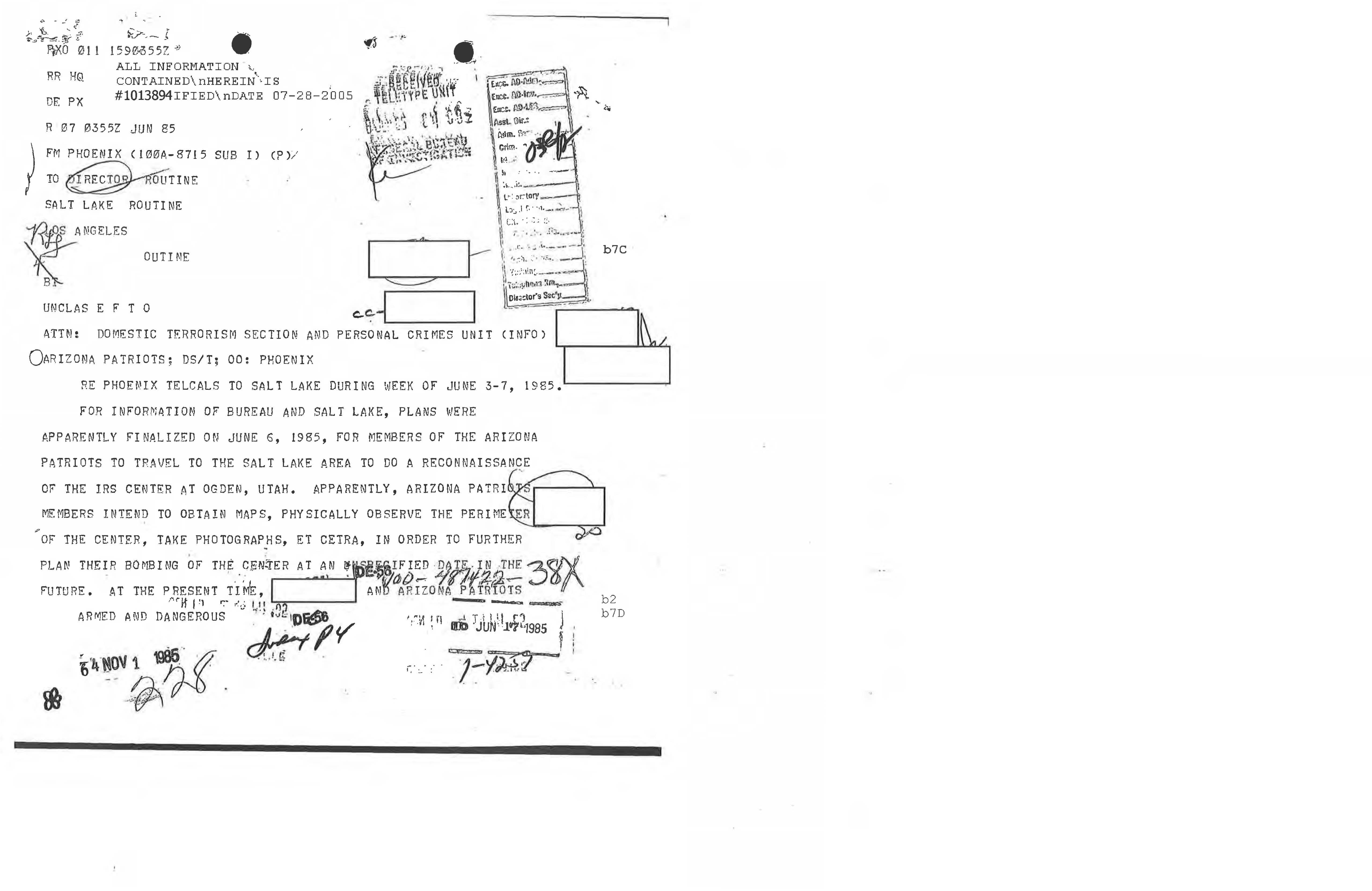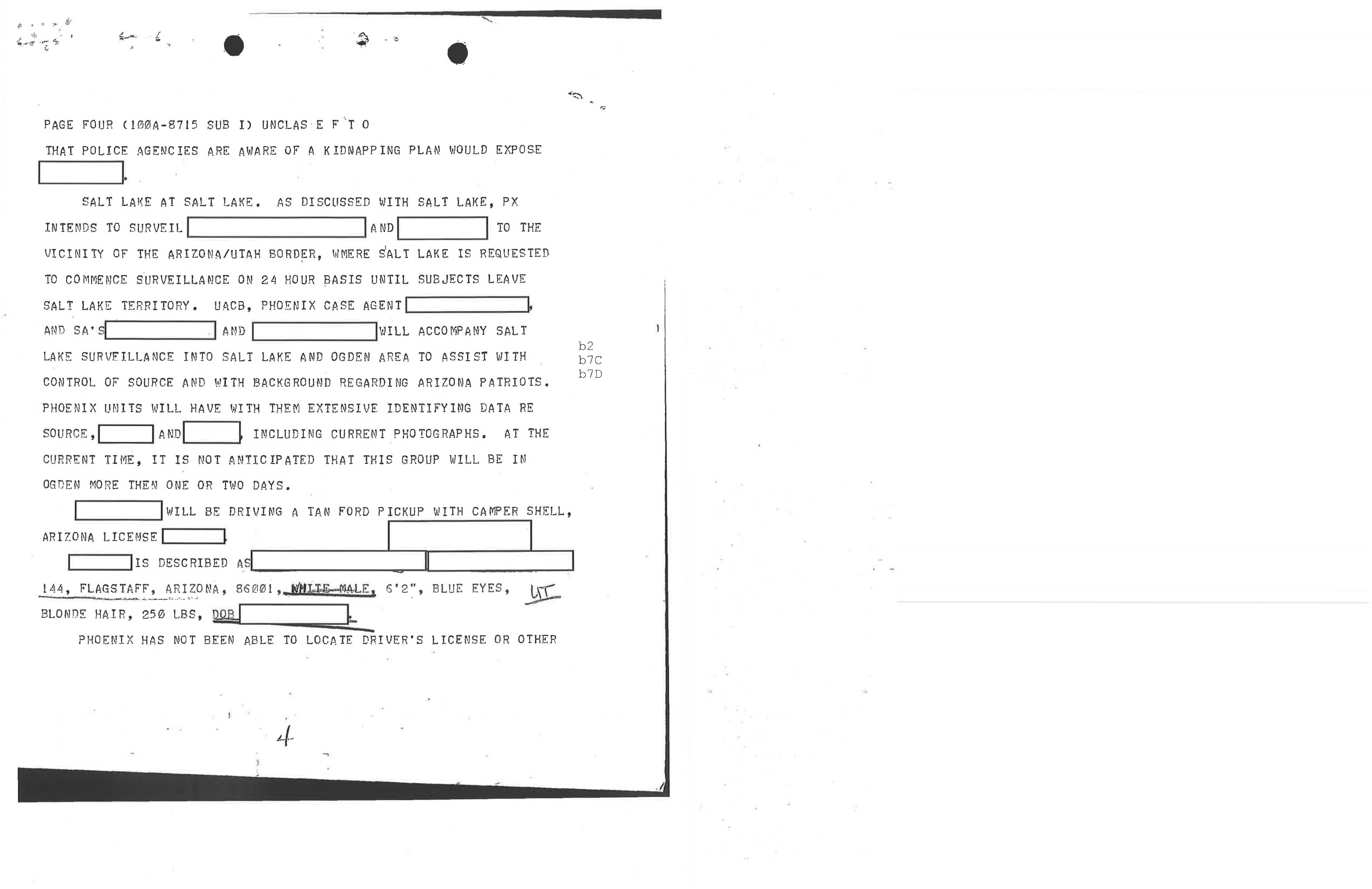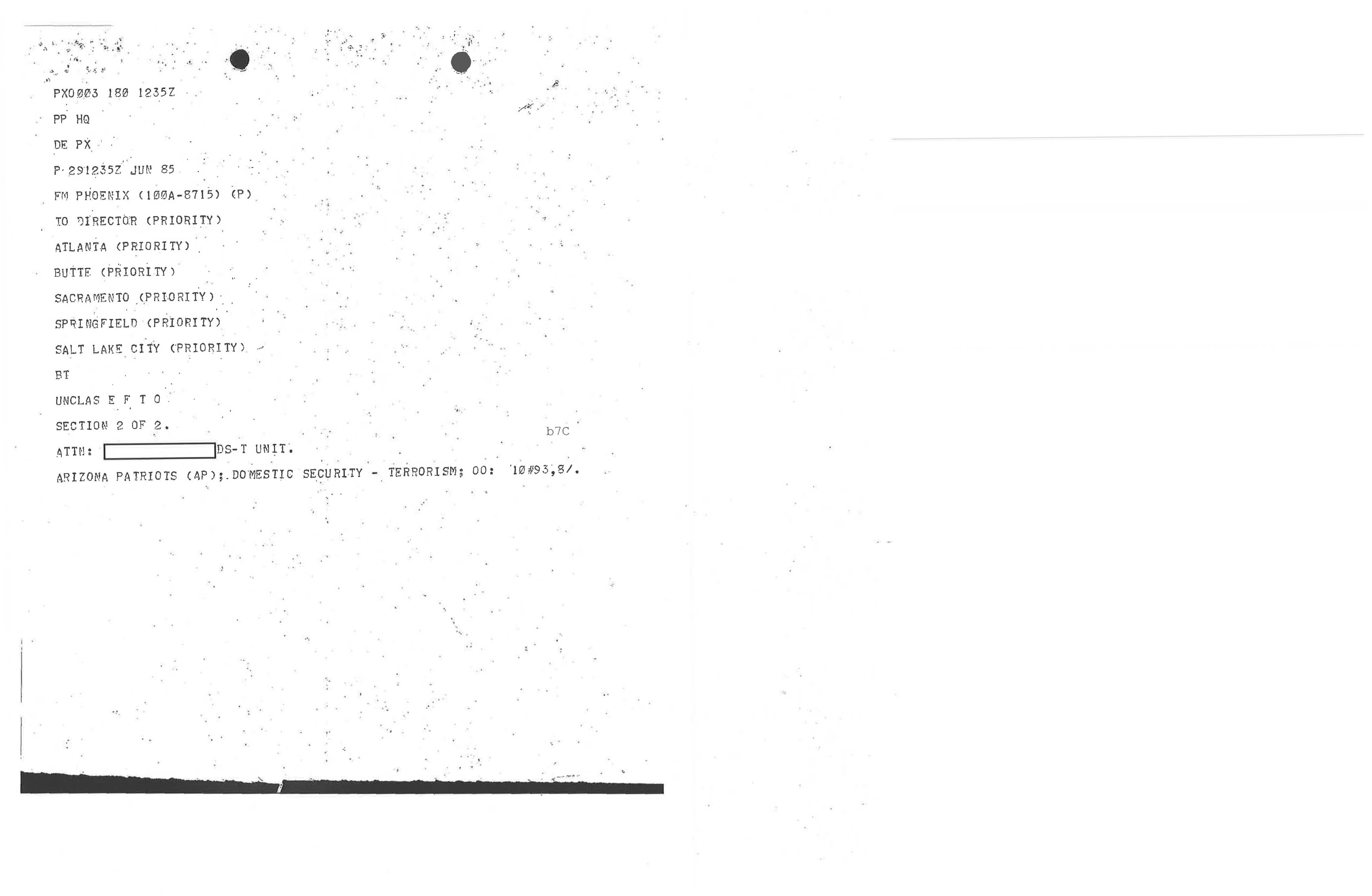 RECENTLY STOPPED BY. ARIZONA DEPARTMENT · 1 OF PUBLIC SAFETY NE~R GORD.EZ JU NCTI_ON, ARIZONA, FOR A TRAFFIC t CITATION~ BOTH "'1EN WERE rn 'uNQ TO s:E HEAVI~Y ARMED, AND WERE , . . WEARING MILITARY-TYPE CAMDFlAUGE CLOTHING. THEIR VEHICLE ALSO CONTAIMEO A COMPUTER, AND THE BROTHERS BRAGGED THEY WERE C.APABLE OF GAINU..'G ACCESS TO : COMPUTER REmRpS AND FI°NANCtAL. I.NST ITUTION$~ . A~O AS SUCH, CXlULD OBTAPI THE NET wpRT!-!_.~ND FULL' BACKGROUND