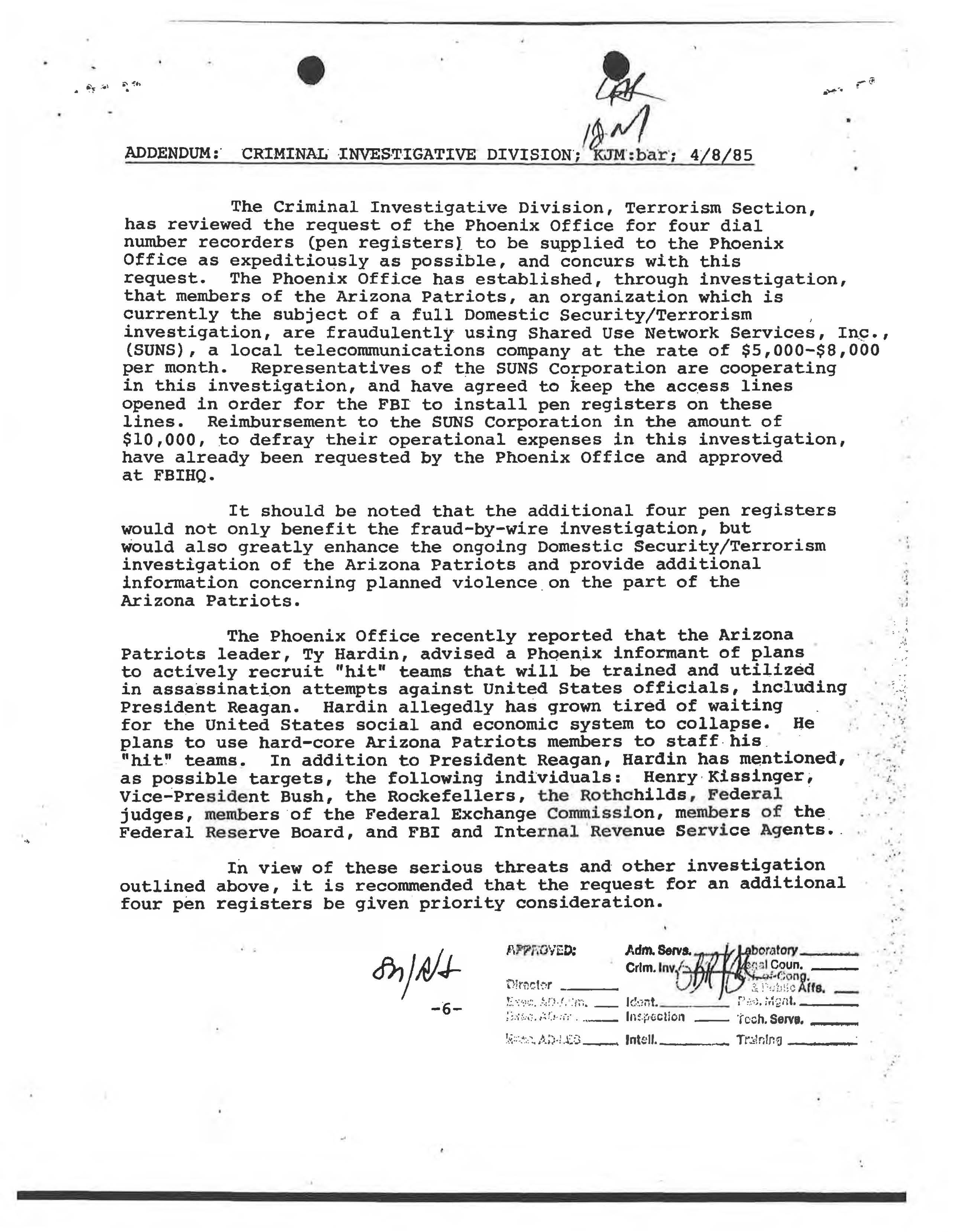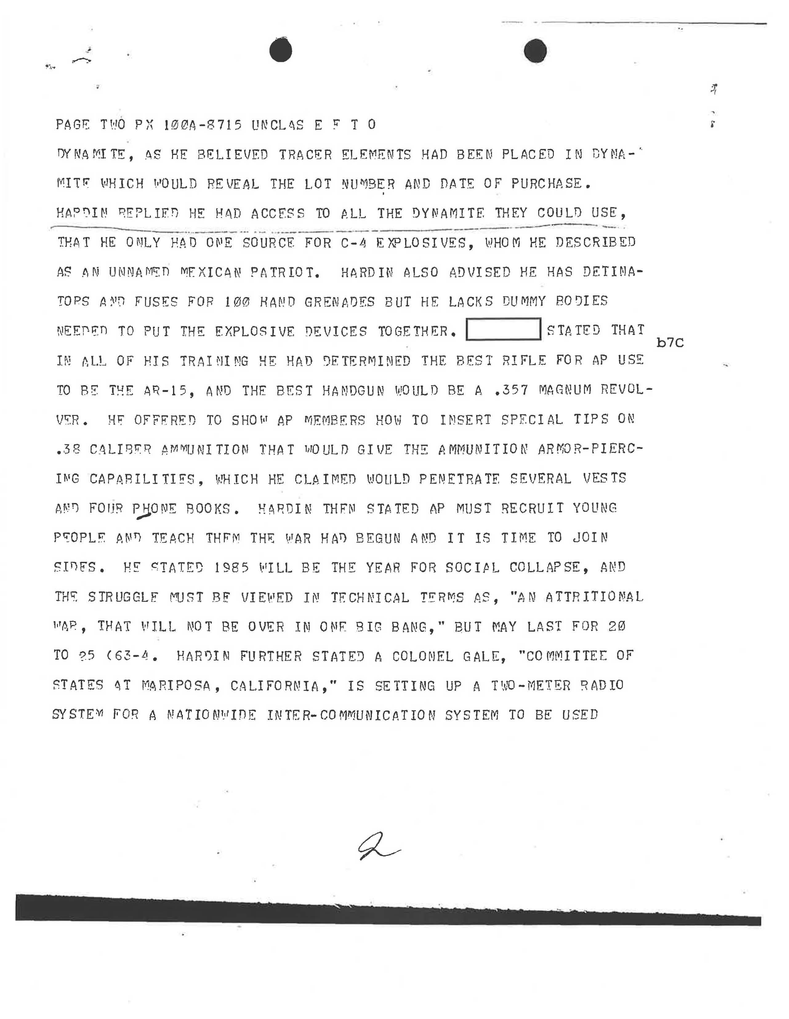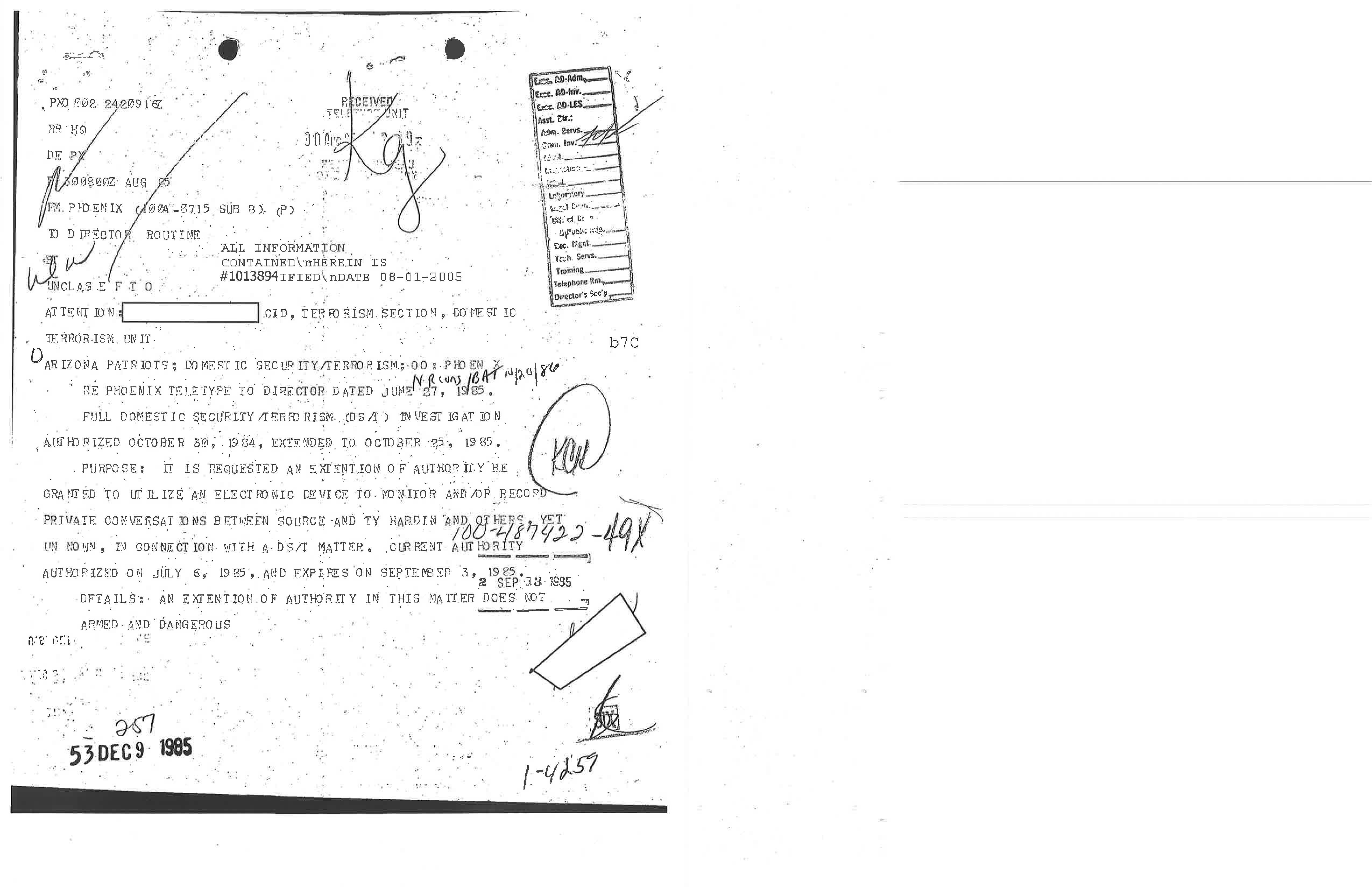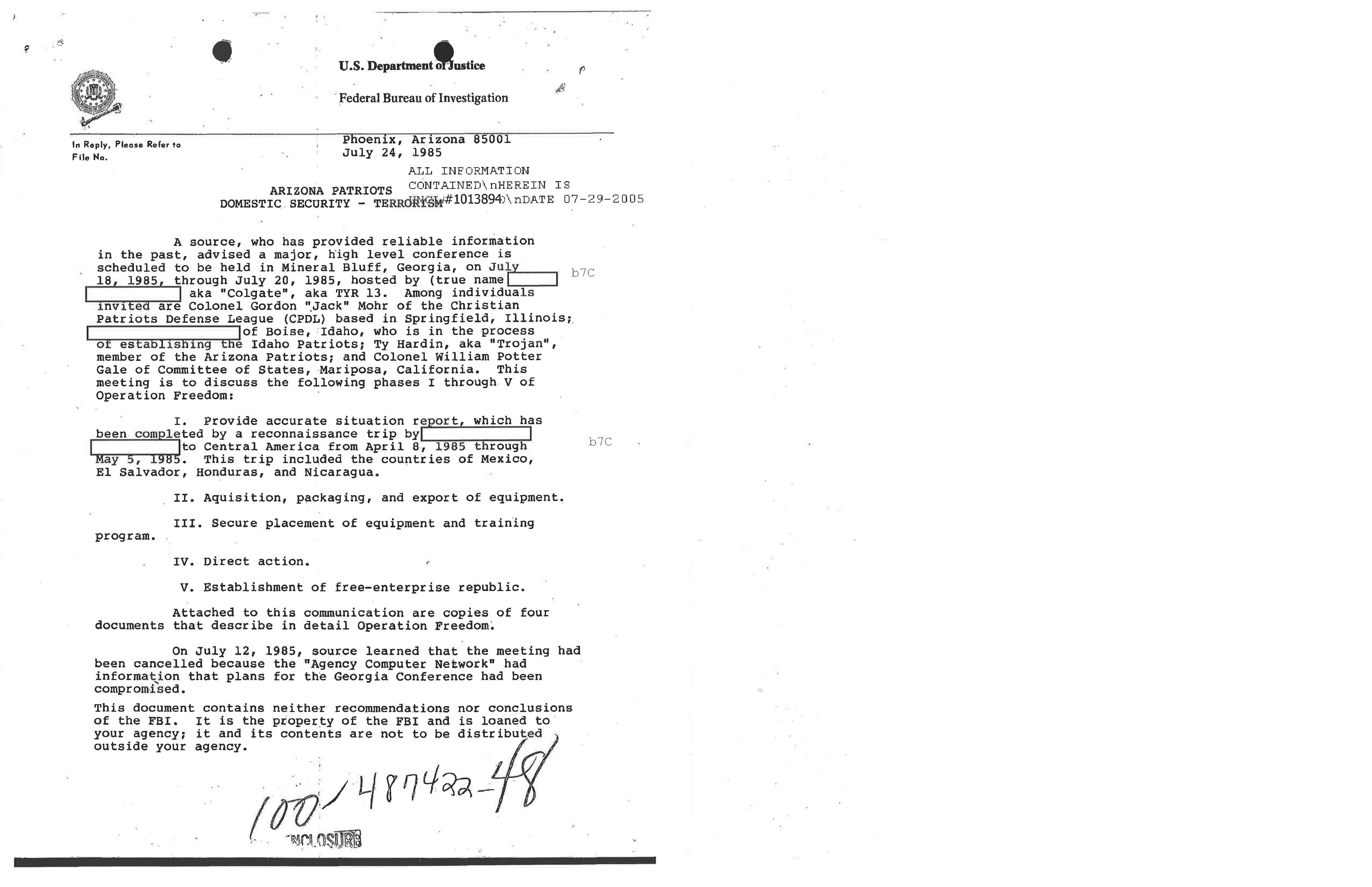 RECENTLY STOPPED BY. ARIZONA DEPARTMENT · 1 OF PUBLIC SAFETY NE~R GORD.EZ JU NCTI_ON, ARIZONA, FOR A TRAFFIC t CITATION~ BOTH "'1EN WERE rn 'uNQ TO s:E HEAVI~Y ARMED, AND WERE , . . WEARING MILITARY-TYPE CAMDFlAUGE CLOTHING. THEIR VEHICLE ALSO CONTAIMEO A COMPUTER, AND THE BROTHERS BRAGGED THEY WERE C.APABLE OF GAINU..'G ACCESS TO : COMPUTER REmRpS AND FI°NANCtAL. I.NST ITUTION$~ . A~O AS SUCH, CXlULD OBTAPI THE NET wpRT!-!_.~ND FULL' BACKGROUND