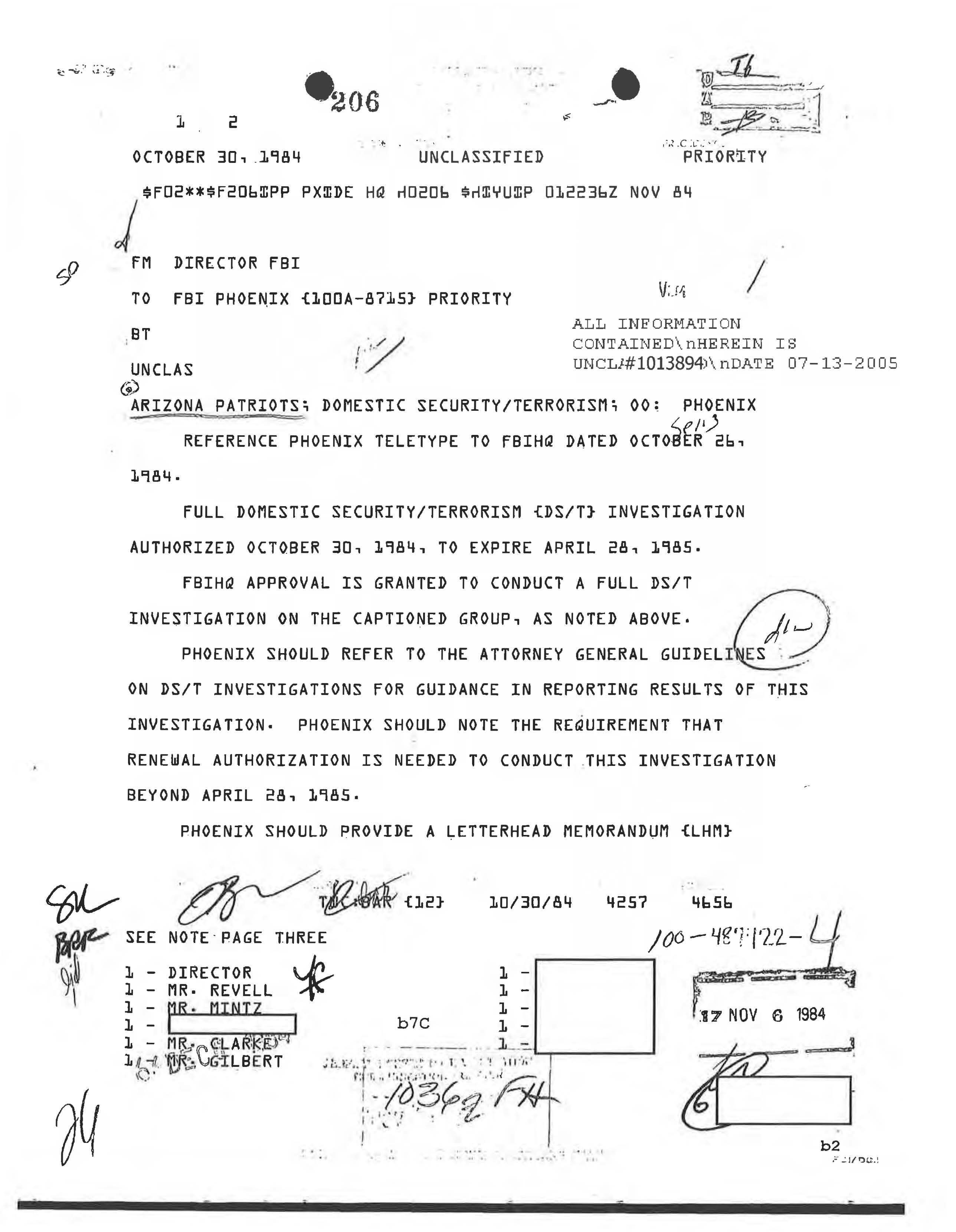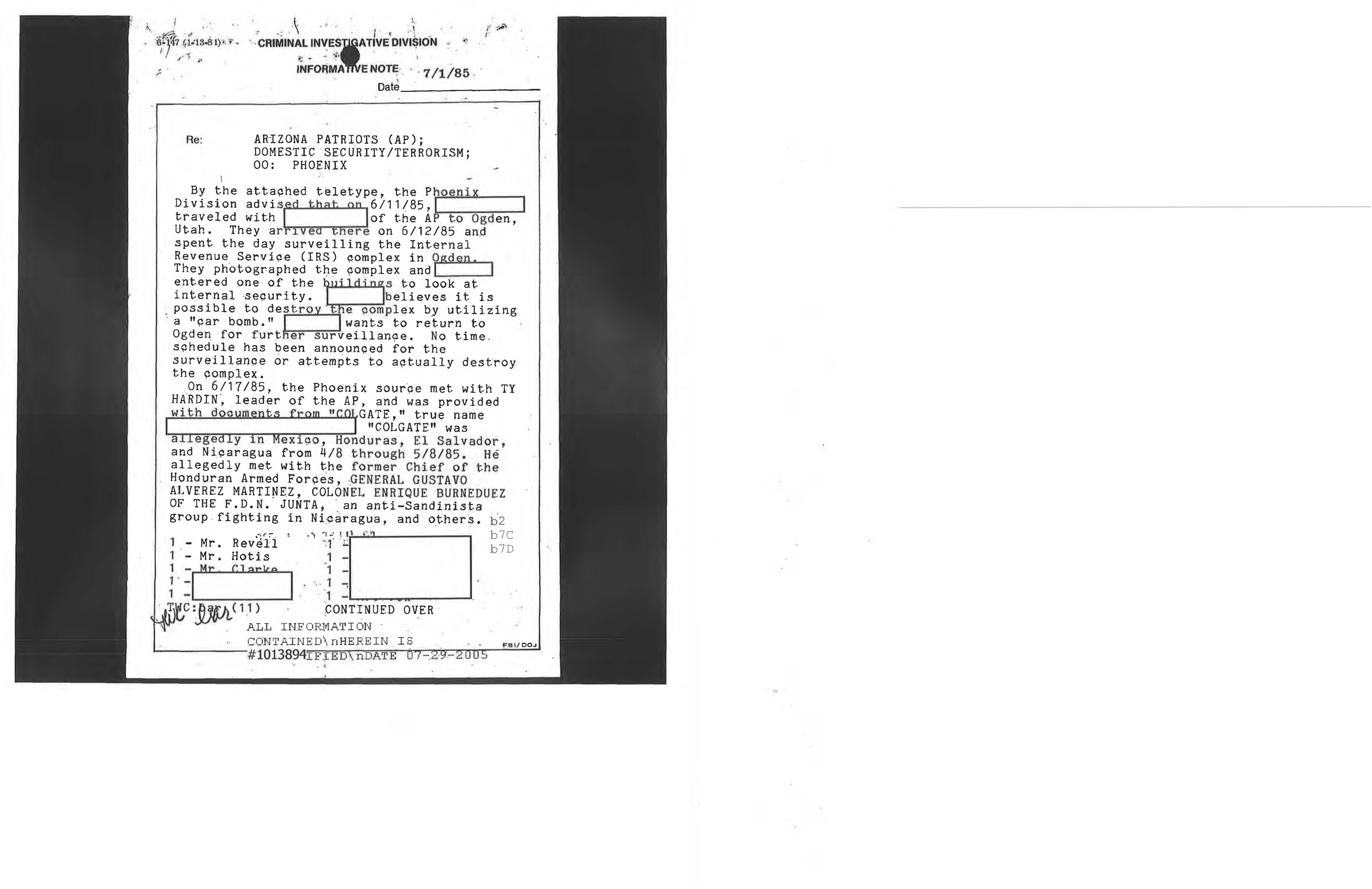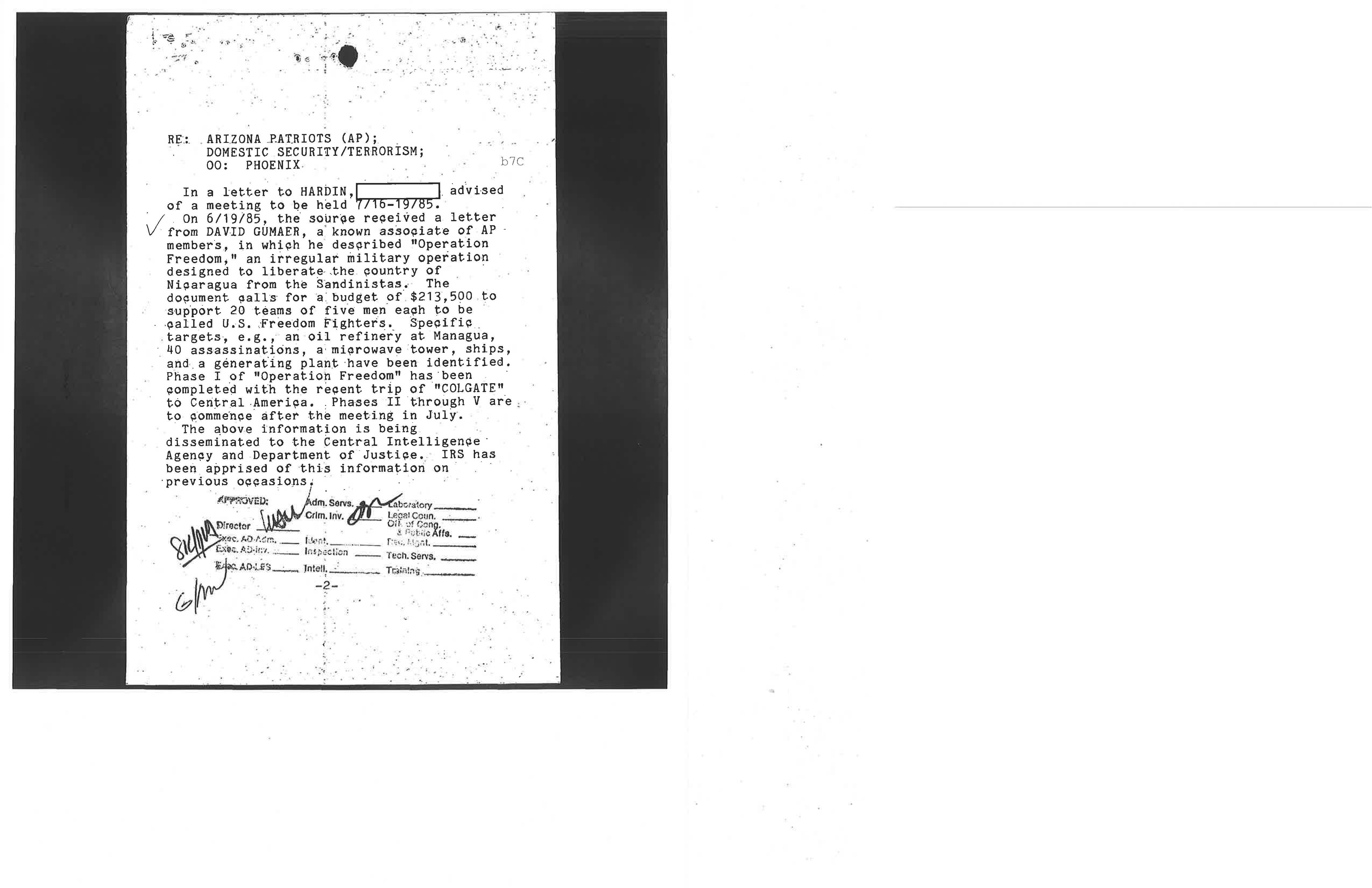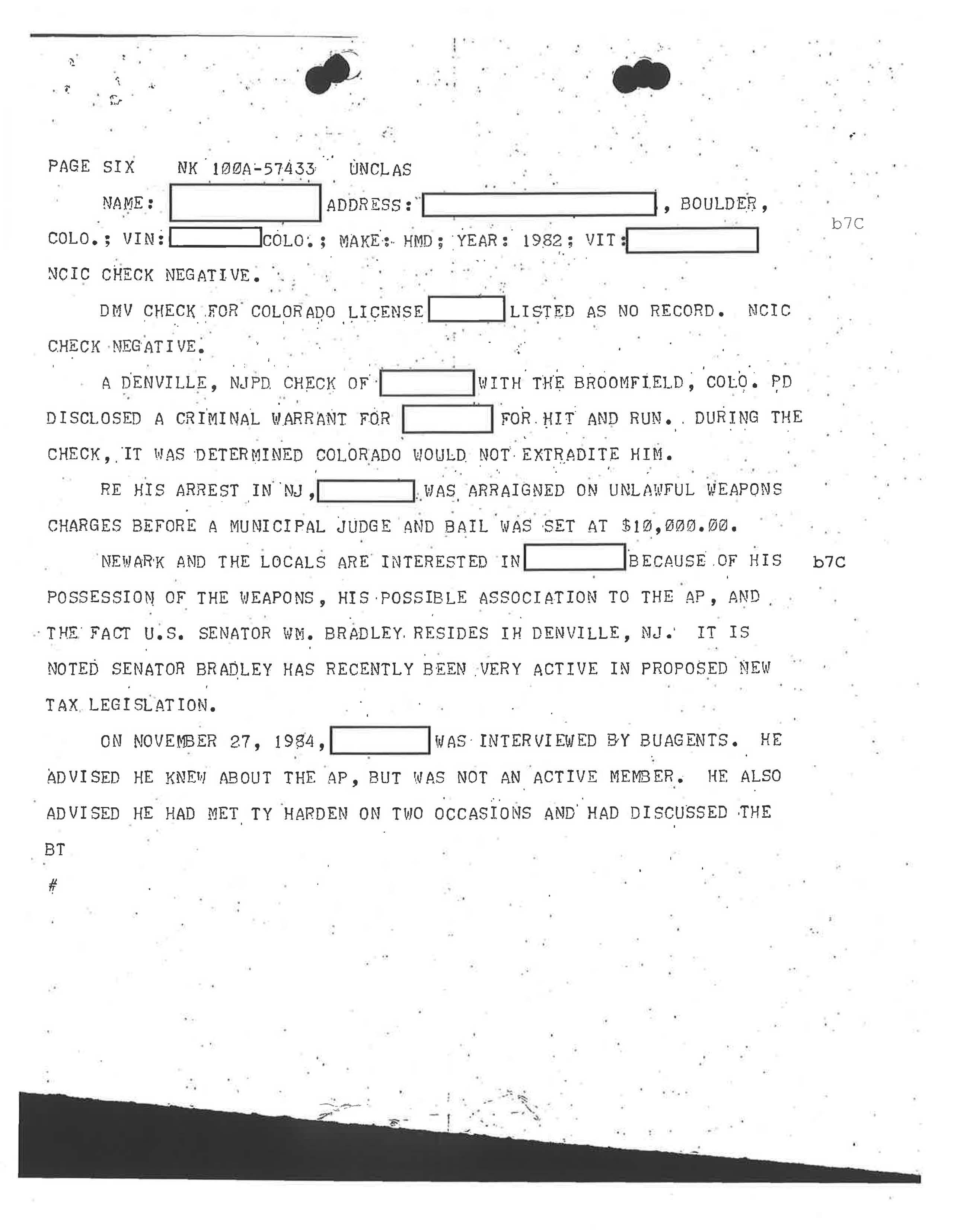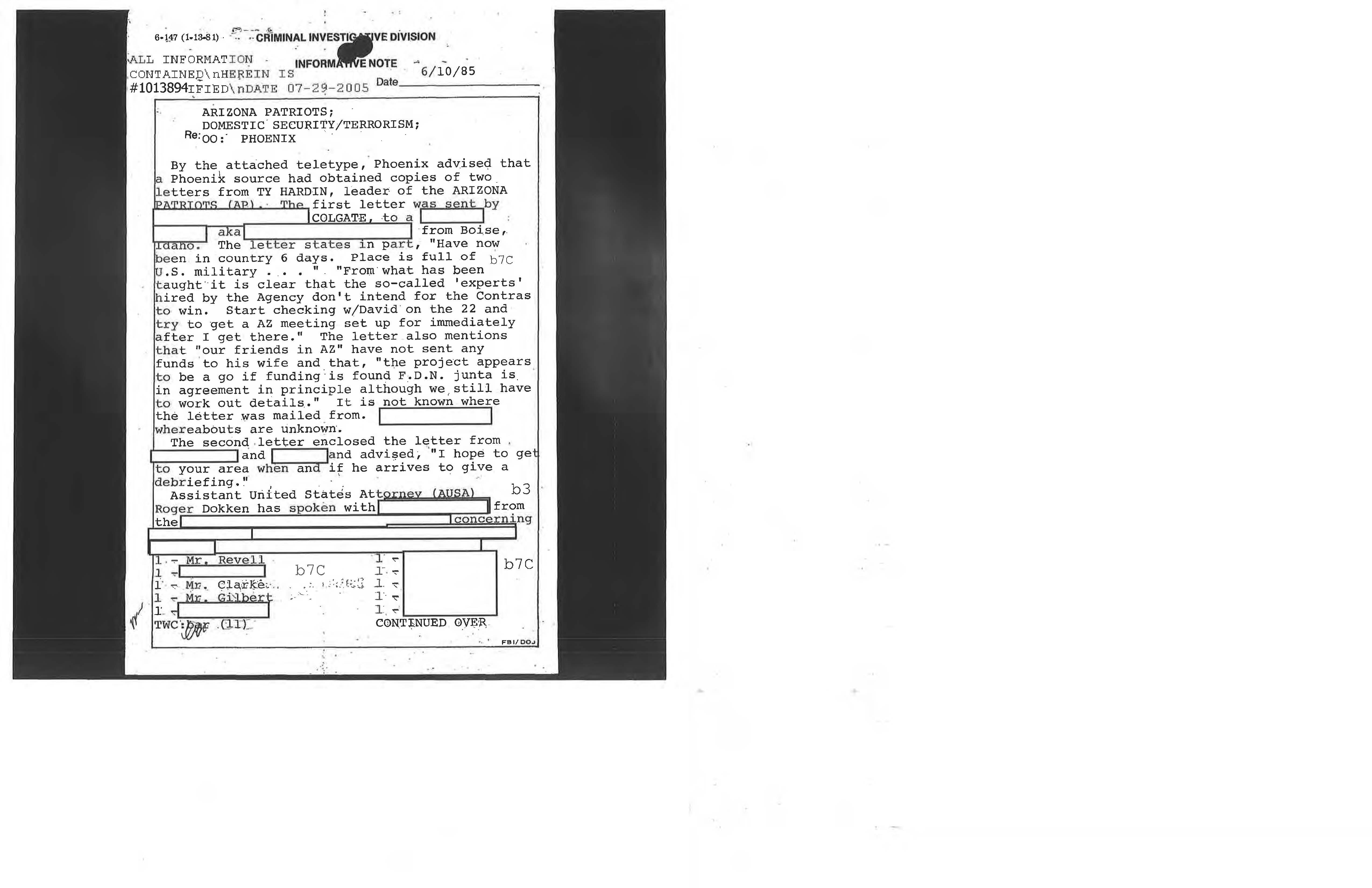 RECENTLY STOPPED BY. ARIZONA DEPARTMENT · 1 OF PUBLIC SAFETY NE~R GORD.EZ JU NCTI_ON, ARIZONA, FOR A TRAFFIC t CITATION~ BOTH "'1EN WERE rn 'uNQ TO s:E HEAVI~Y ARMED, AND WERE , . . WEARING MILITARY-TYPE CAMDFlAUGE CLOTHING. THEIR VEHICLE ALSO CONTAIMEO A COMPUTER, AND THE BROTHERS BRAGGED THEY WERE C.APABLE OF GAINU..'G ACCESS TO : COMPUTER REmRpS AND FI°NANCtAL. I.NST ITUTION$~ . A~O AS SUCH, CXlULD OBTAPI THE NET wpRT!-!_.~ND FULL' BACKGROUND