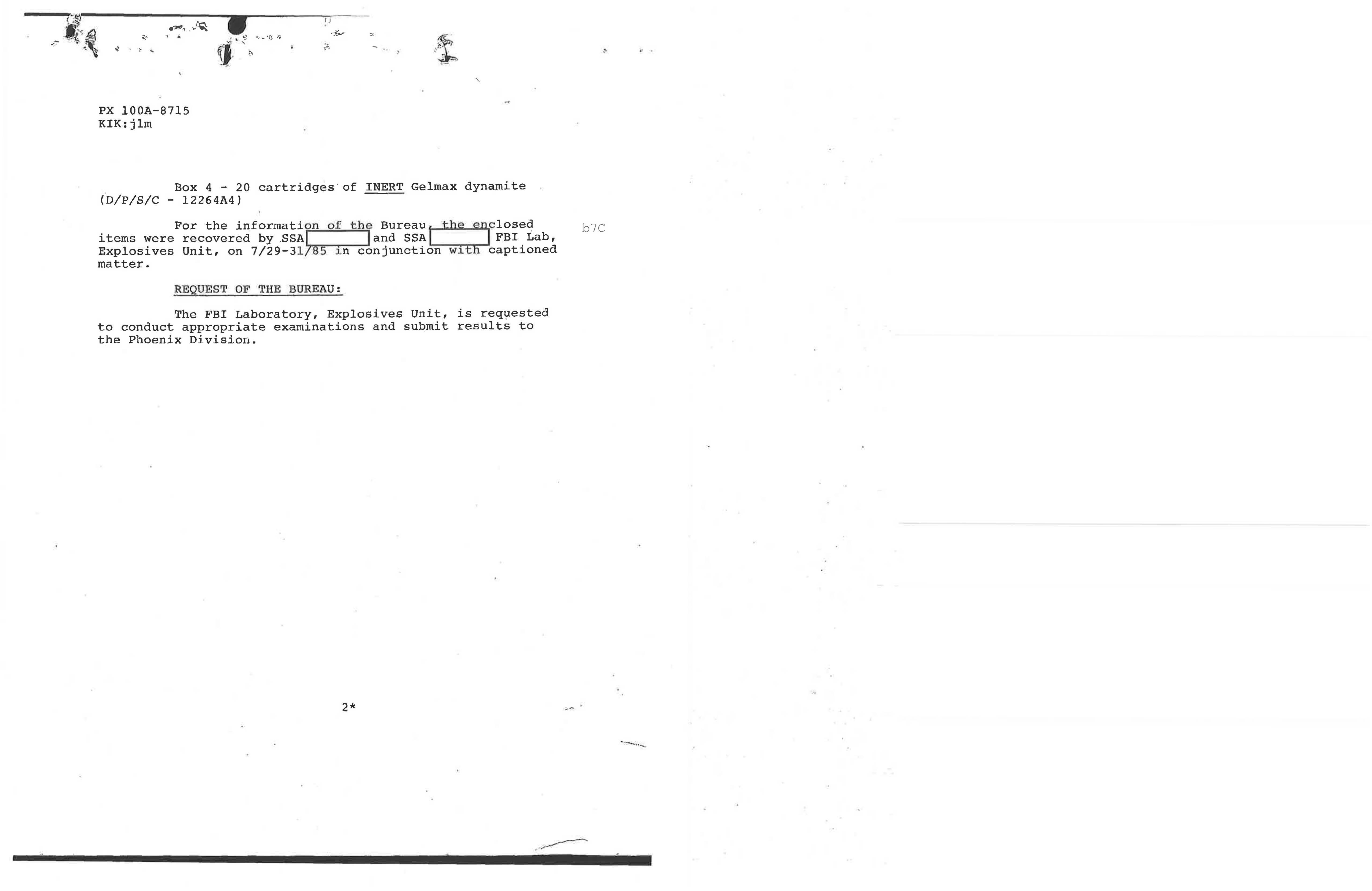 The submitted sl,)eoitnene Ql tru:ough Q6 a~e samples of explosives and explosive aoeessoriee ~~hioh were seized on July 31, 1985, ana Au.gust 1, 1985, by Agents of t:he Explosive