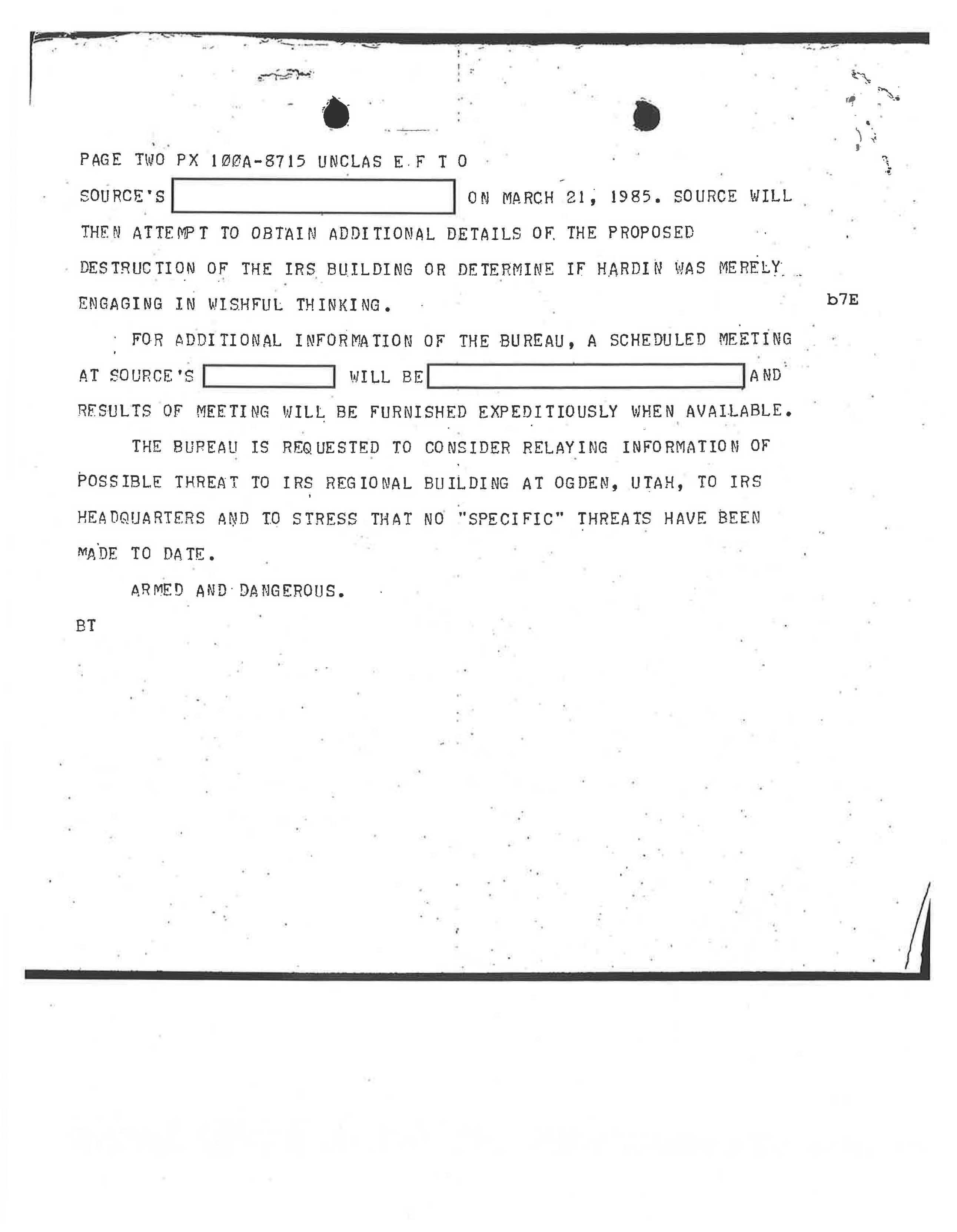 TRAY:LLED TO OGDE~ ,~-WHERE A SURVEILLANCE wr.i;S co NDUCTEP ON THE IRS REGI0 ~'1AL COMPLEX. l I CURREMIJ v HAS . Pl A~,::Q