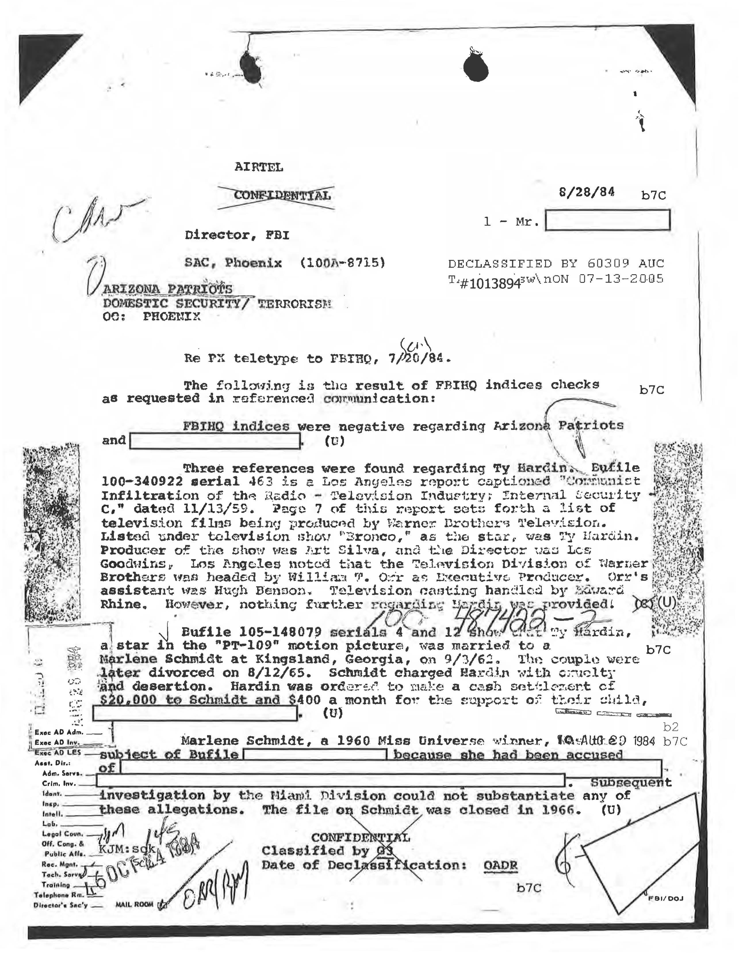 The following documents appearing in FBI files have been reviewed under the provisions ofThe Freooom of Infonnation Act (FOIA) (Title 5, United States Code, Section 552) ; Privacy Act of 1974 (PA) (Title S, United States Code, Section 552a); and/or Litigation.