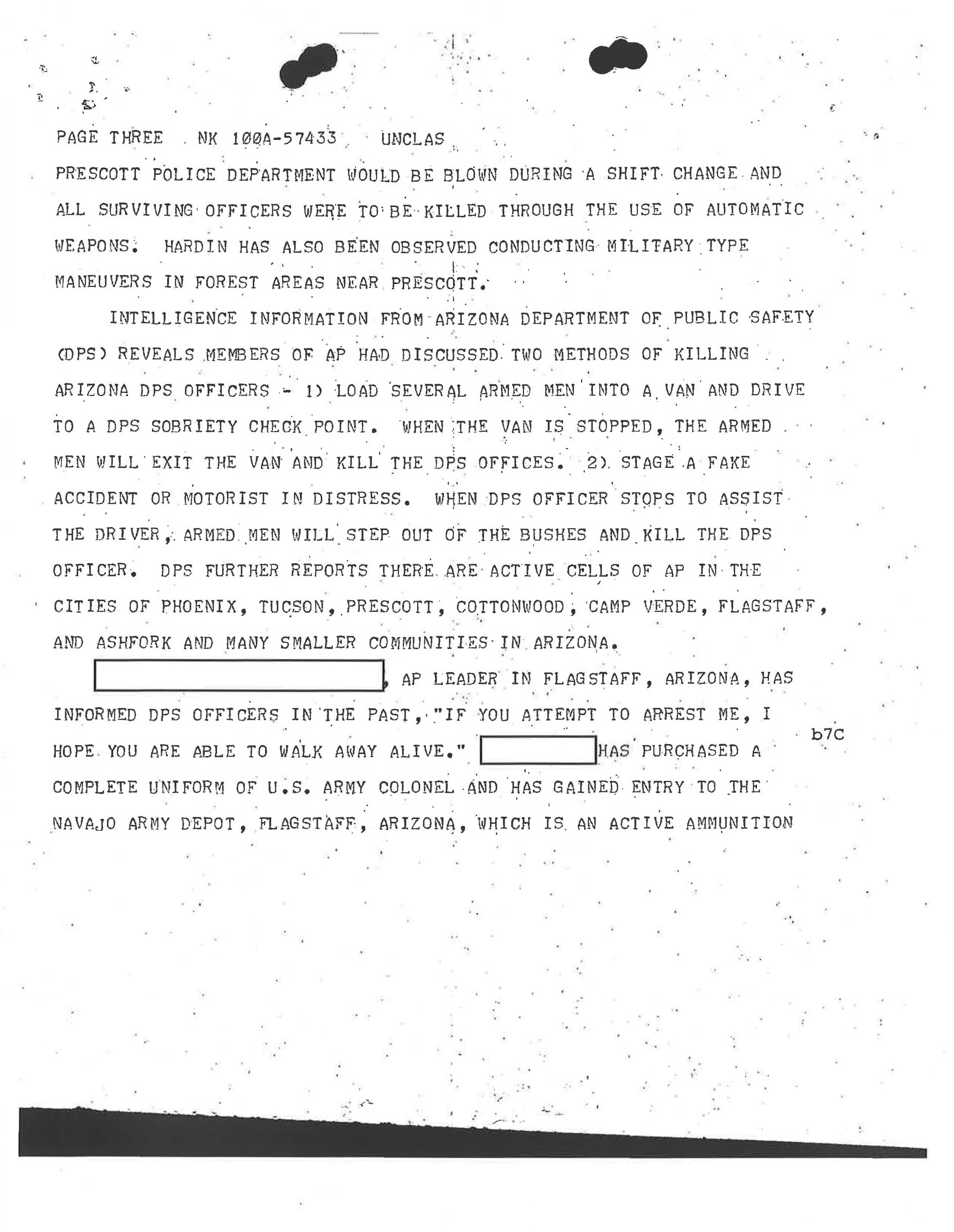 TO PL ACE THE Fl."AG ST AFF PO LI CE OFF! CEH UNDER CITIZEN~ S ARRE"ST WMILE INSIDE THE FLAGSTAFF POLICE DEPARTMENT STATION. FOR ADDITIOr-JAL HffOR,MATION, I IHAS .SERVED " I~ THE u.s. IV!ARINE CORP A~ REPORTEDLY HAS RECEIVED · E'XTENSIVE TRAI~ING Hl F'IREARMS AND HE IS FURTHER DESCRIBED AS J:0-LLOWS: .