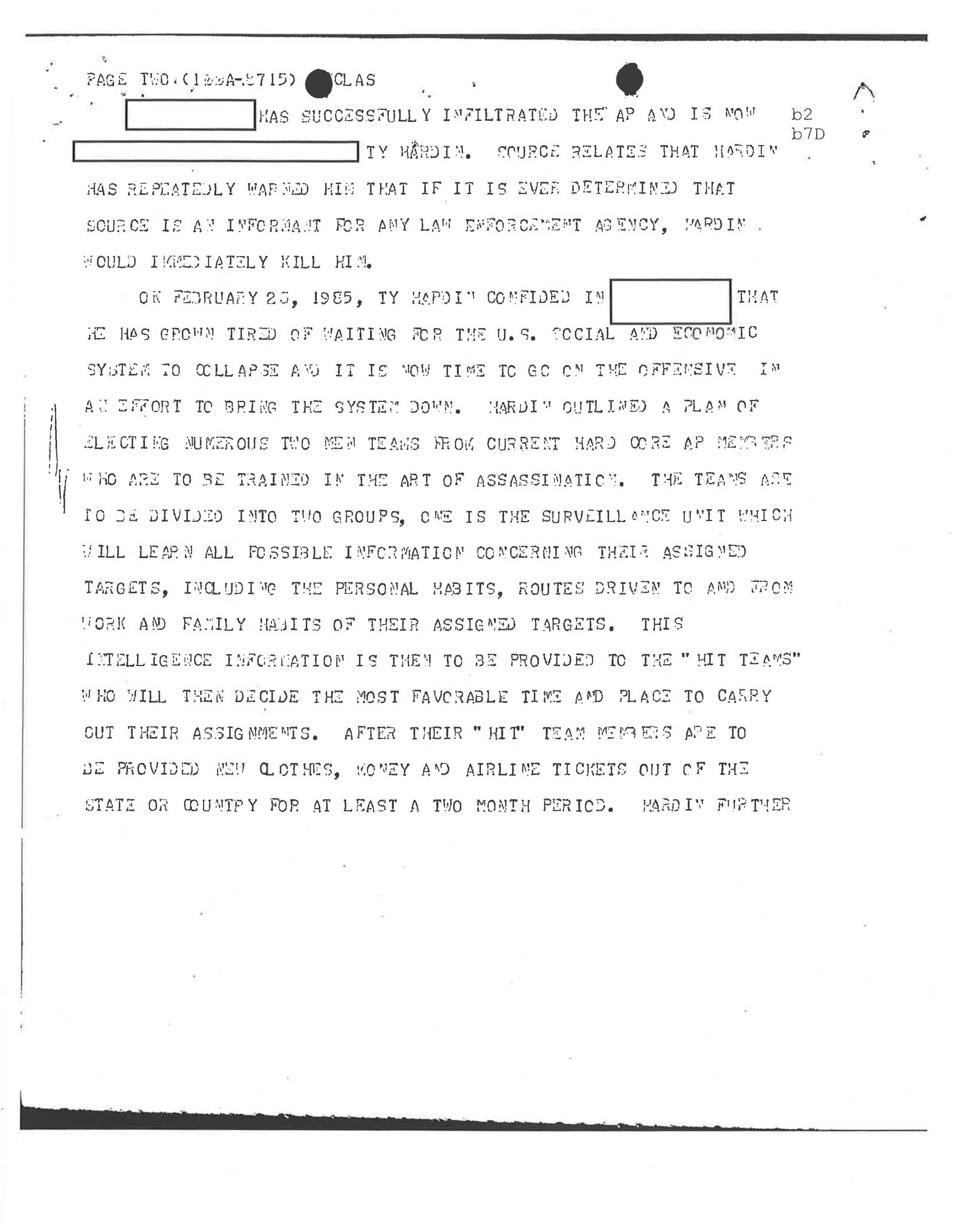 NATIONWIDE RESEARCH OF iRS FACILITIES . HJ ORDER TO DETERMINE WHAT MEA~S ~RE ~!ECF.SSARY:FOR THE.IR TOTAL DESTRUCTION. I rrs DESCRIBED AS .IGHT BROWN HAIR, BLUE EYES, WE'IGHT 250 .POUNDS, AND.HIS FULL NAME IS _ I
