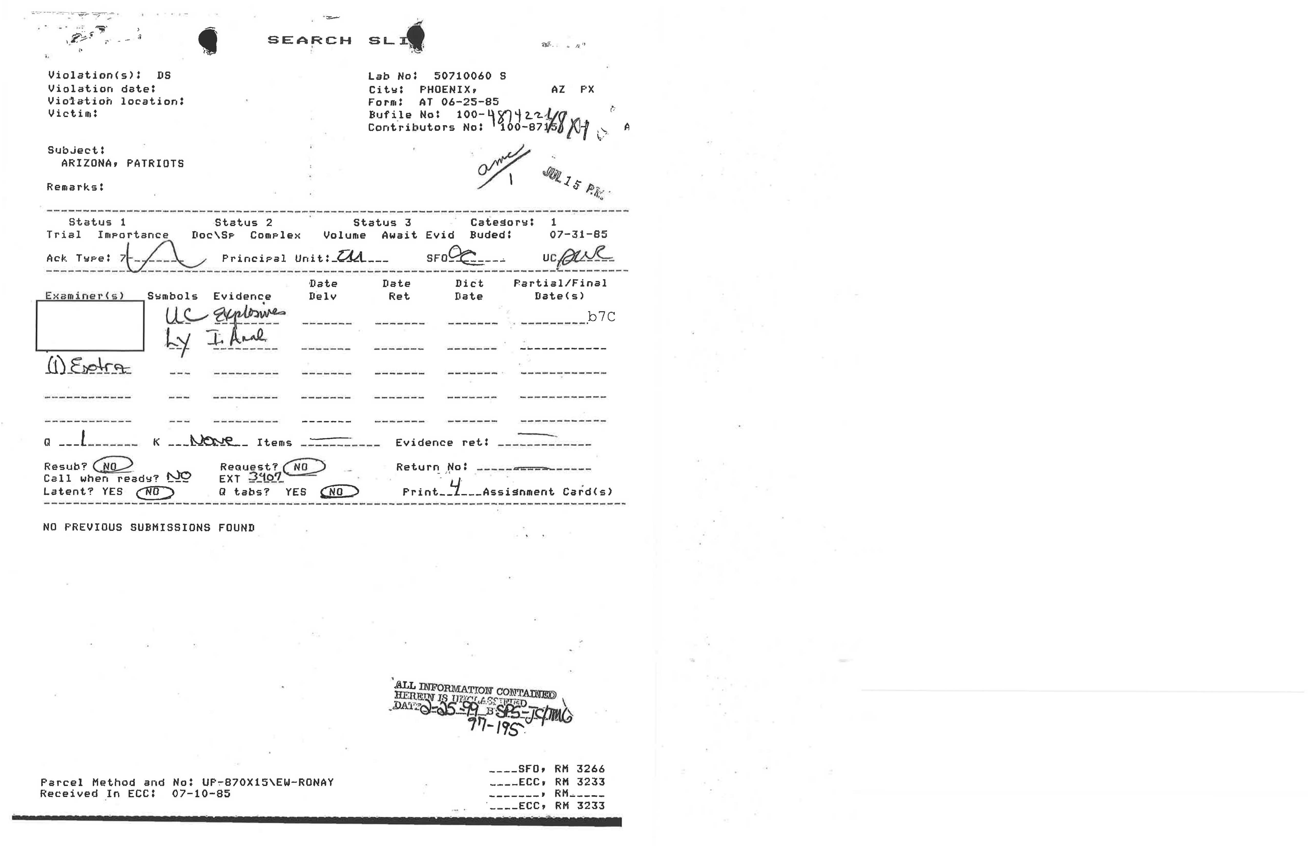 Subject: Computer or Case Identification Number : Title of Case: File 0 Litigation 0 Executive Order Applied Section ______ Serials Rev:1_·-ewed_: Release Location: *File _ -,- _____ Section _______ WJitNI =