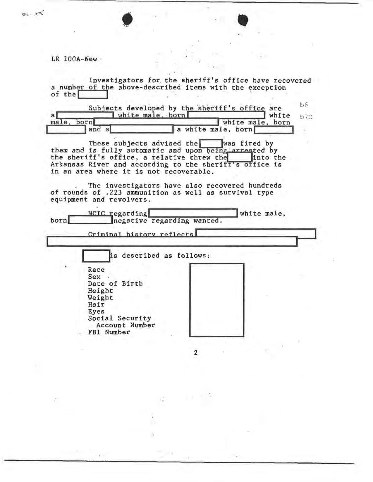 The enclosed documents were revieyved under the Freedom of Information/Privacy Acts (FOIPA), Title 5, United States Code, Section 552/552a. Deletions have been made to protect information which is exempt from disclosure, with the appropriate exemptions noted on the page next to the excision In addition, a deleted page information sheet was inserted in the file to indicate where pages were withheld entirely. The exemptions used to withhold information are marked below and explained on the enclosed Form OPCA-16a: