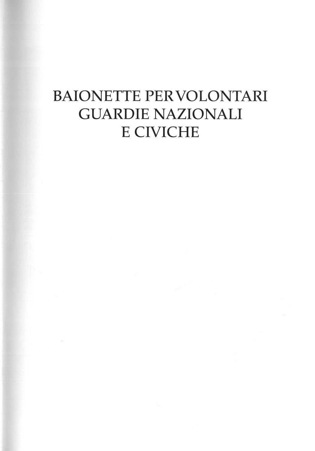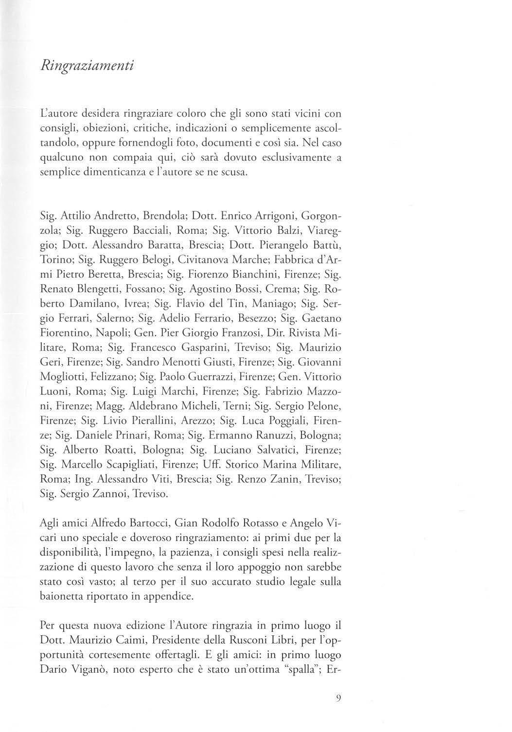 Ag li amici Alfredo Barrocci, Gian Rodo l fo Rotasso e Angelo Vicari uno specia le e doveroso ringraz iamento : ai primi due per la disponibilità, l'impegno, la pazienza, i consigl i spesi nella realizzazione di questo lavoro c he senza il loro appoggio non sareb b e stato così vasto; al terzo per il suo accurato studio legale sulla baionetta riportato in appendice.