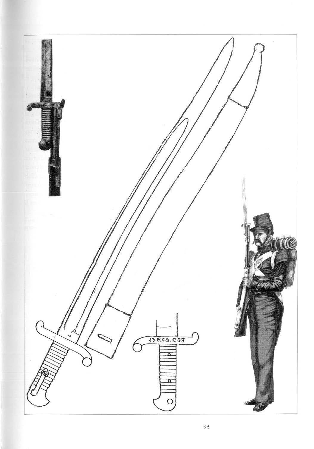 li ~Iaa ico ed il Braccio della Baio netta so no di ie1To : I~ L~ma sioo aU~ punt~. i! tutta d'acciaio di tempr" aduolrna ed elastica. La sua lunghezza è , a,ia , co me il peso. Qua ndo quesl' arm :a non i: ionastat.1, , ien port:lla dal soldato peadenle dal budriere della sciabola entro uo foàero òi cuoio, che si chia ma particolarmente Guaina ; In frane. F'Jurreau de la baionnette.