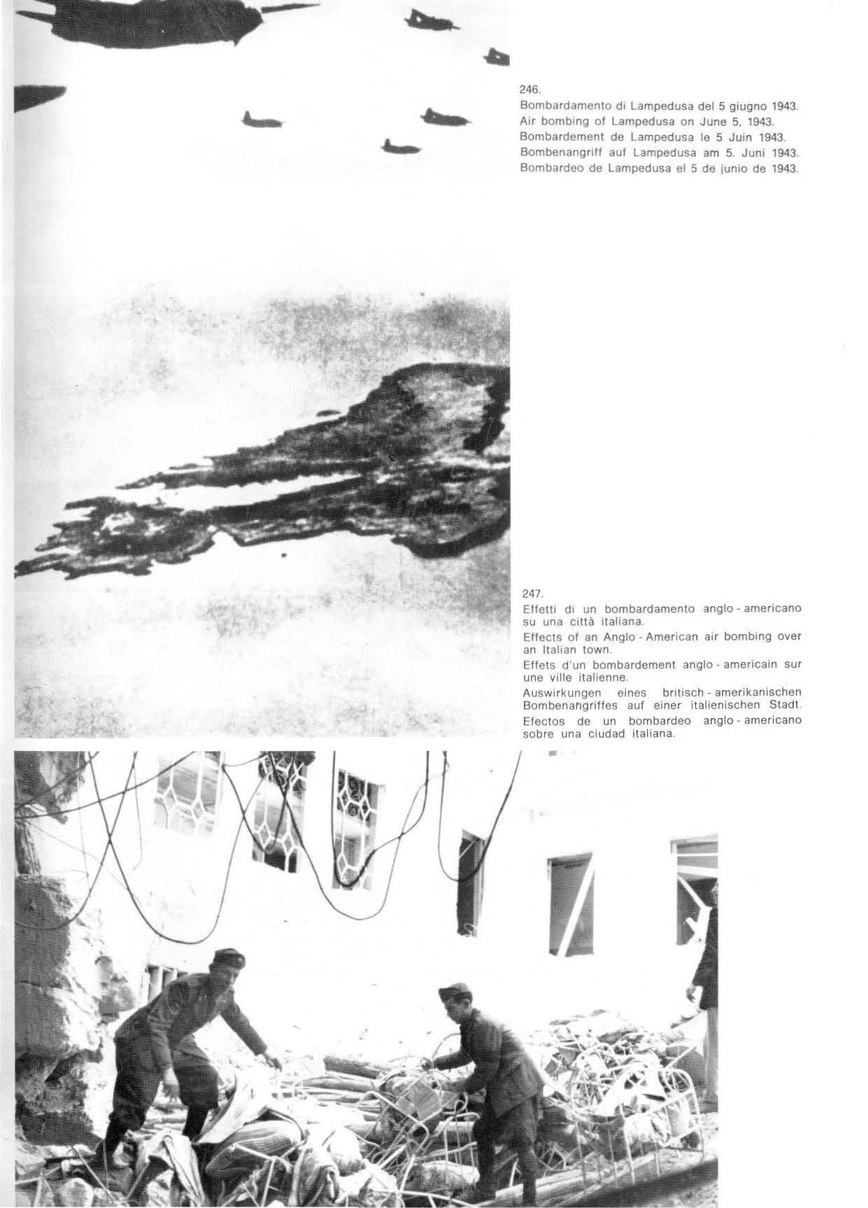 barco escoltados por seis buques de guerra , tres portaaviones, veinte cruceros, un centenar de destructores, torpederos y otras unidades menores). los Anglo- americanos desembarcaban en Sicilia entre Licata y Siracusa. Por medio de una imponente masa de 160.000 hombres, 6000 entre tanques y caiiones. 1800 piezas de artilleria y de una aplastante superioridad aérea. ellos vencieron a la modesta defensa costera y a las unidades m6viles que intentaron oponerse a su voluntad de afirmarse en la isla. Las operaciones duraron treinta y ocho dias y el 17 de agosto, después de la evacuaci6n de Messina por parte de las unidades italoalemanas. toda Sicilia se encontr6 en las manos de los Anglo - americanos.