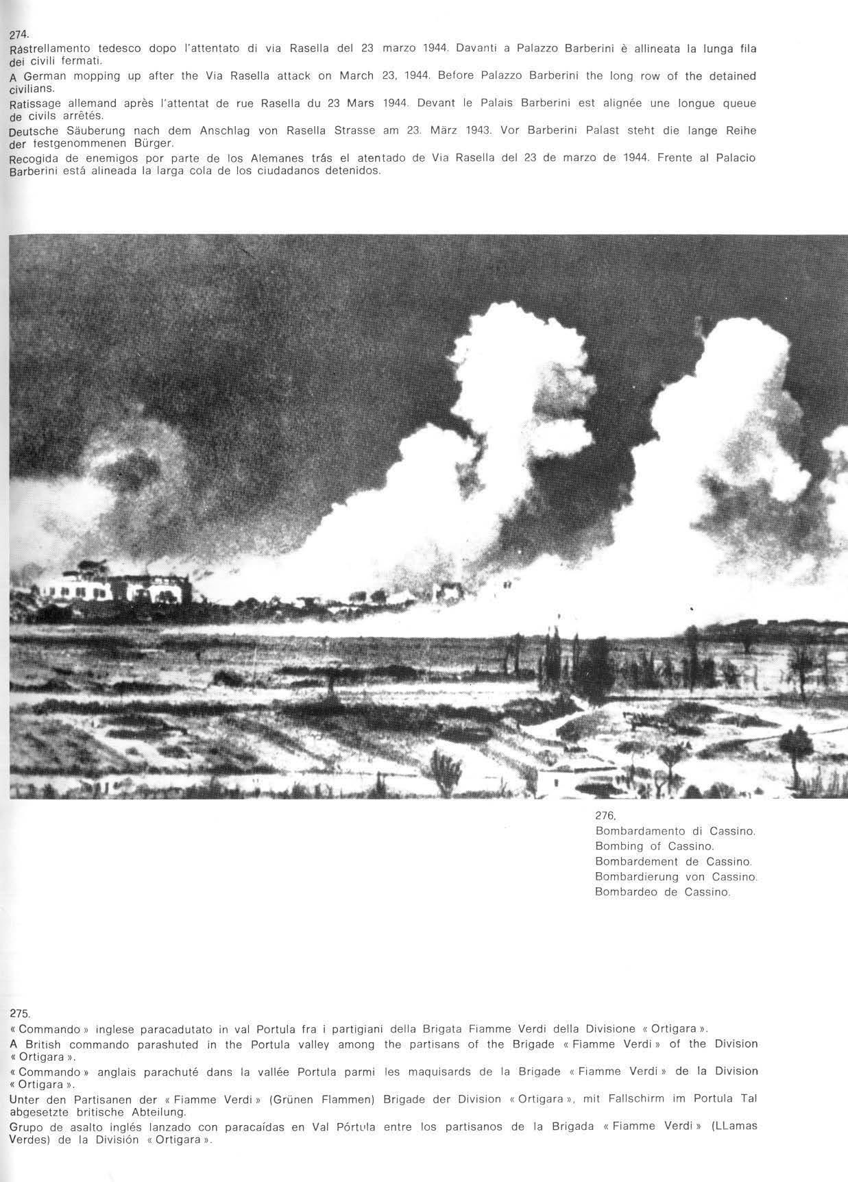 A estos aspectos hay que ariadir la resistencia de los soldados detenidos en los campos de prisioneros de Alemania que opusieron sus decididas denegaciones a las ofrendas alemanas; el 98,7% de los recluidos militares decidi6 ir tirando, prefiri6 los sacrificios y riesgos de ser prisionero mas que volver a Italia actuando contra su propia gente. Por fin, no en orden de importancia. sino mas bien porque toda otra acci6n representa el anhélito de Italia a la libertad. su participaci6n a la resistencia armada, glorioso fenomeno que interes6 a todo el pueblo italiano y que vi6 su intervenci6n espontanea y coral. En el territorio naciona l ocupado, los primeros en el ale jarse a las montarias, para evitar el desarme y la captura. grupos de mil i tares y oficiales aislados. suboficiales y tropa constituyeron con otros patriotas formaciones partisanas o ingresaron en las que surgieron por iniciativa de los Comités locales Las aportaciones de los hombres del Ejército de Tierra en las formaciones del Cuerpo de Voluntarios de la Libertad y las relativas organizaciones de misiones y lanzamientos desde aviones fomentadas y curadas por el Estado Mayor Generai, fueron valiosisimas y contribuyeron tangiblemente a llevar a cabo aquella lucha partisana que. desde septiembre de 1943 hasta la insurecci6n generai de 1945. en las montarias. en los llanos, en las ciudades. constituy6 una constante espina en las filas de las fuerzas nazifascistas favoreciendo el grandioso esfuerzo aliado para el rescate de nuestro Pais