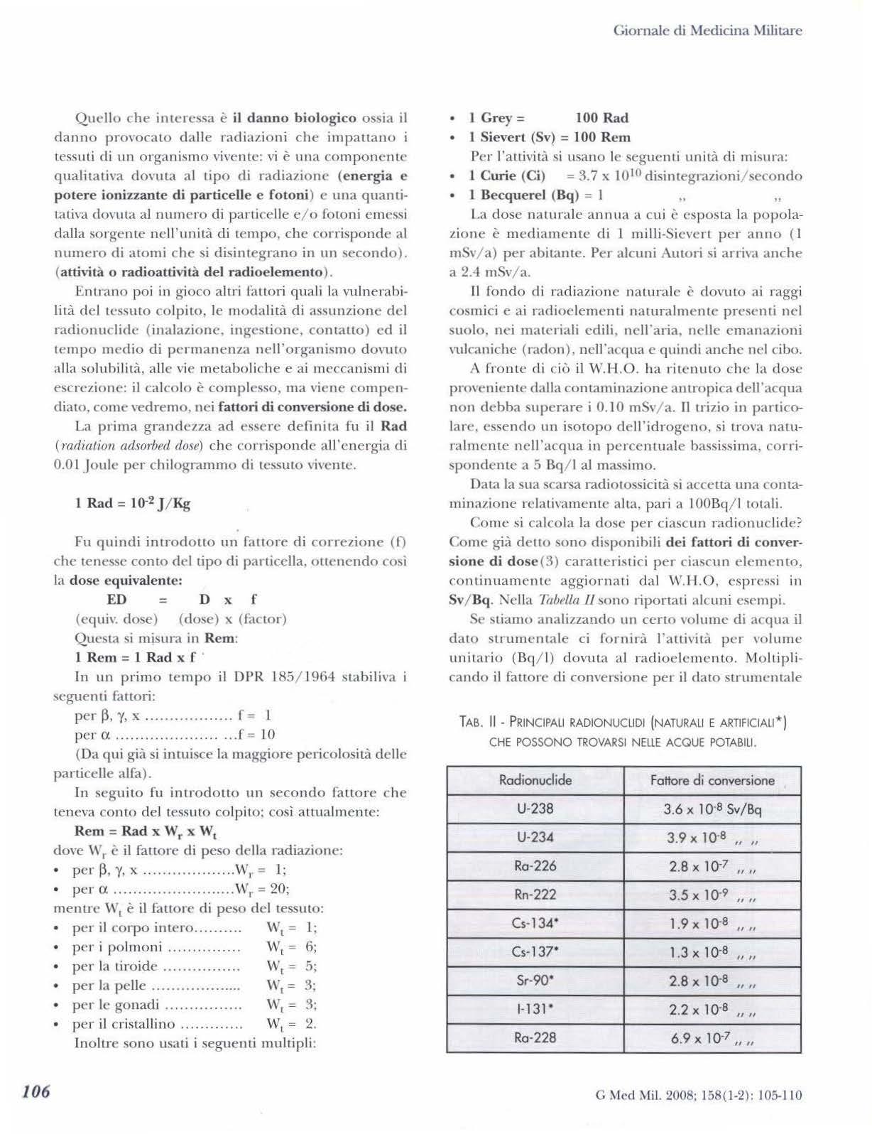 105 Problematiche connesse alla radiometria delle acque potabili secondo il D. Lgs. 31 / 2001.