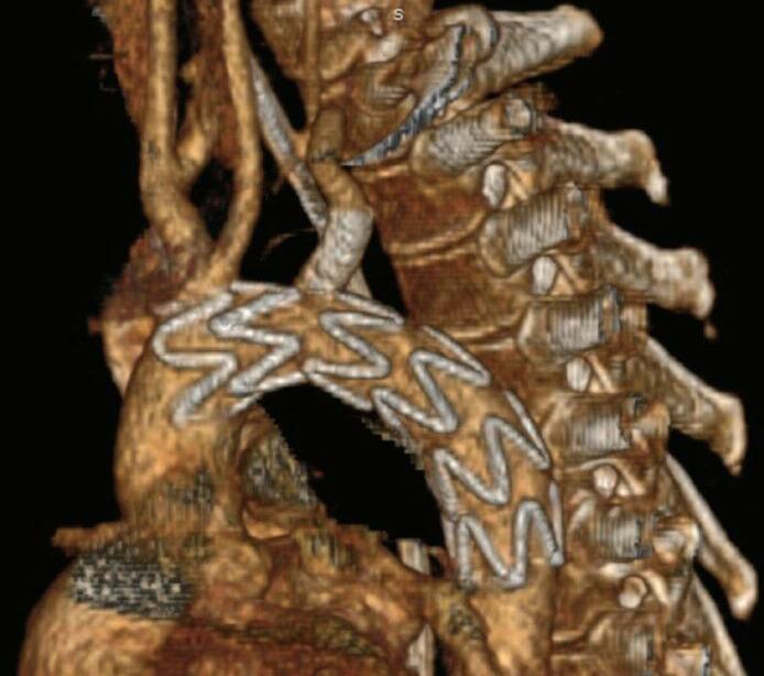 159 R i p a ra z i o n e t o t a l m e n t e e n d ova s c o l a r e d i u n a r o t t u ra dell’istmo aortico: caso clinico in un politrauma Totally endovascular repair of a traumatic aortic isthmic rupture: