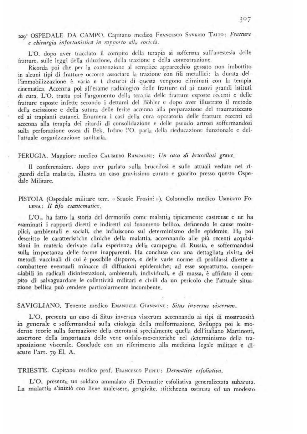 L3 conoscenza di tali particolarità di decorso e \ 'arietà di quadri clinici dovrebbe indiri?.Zare verso adatte m isure di profibssi e di terapia intese a limitare, il più possi· hile. le funeste della t u bercolosj sia sui c h e sulla sarut3 della r azza. lndiscutibilrncnte di notevole interesse scientifico e pratico sono le ossen·azionj del prof. Costan t ini sui quadri cliruci c particola rit à d i decorso che assume con frequenza la tuberco lo si polrnonare nei militar i ndl':lttuale fase della guerra, e che conferma n o quanto già era stato constatato presso altri istituti eJ e r ::t stato oggetto di discuss ione in occasione dd convegno sulla tubercolosi di guerra del ma gg io 1942.