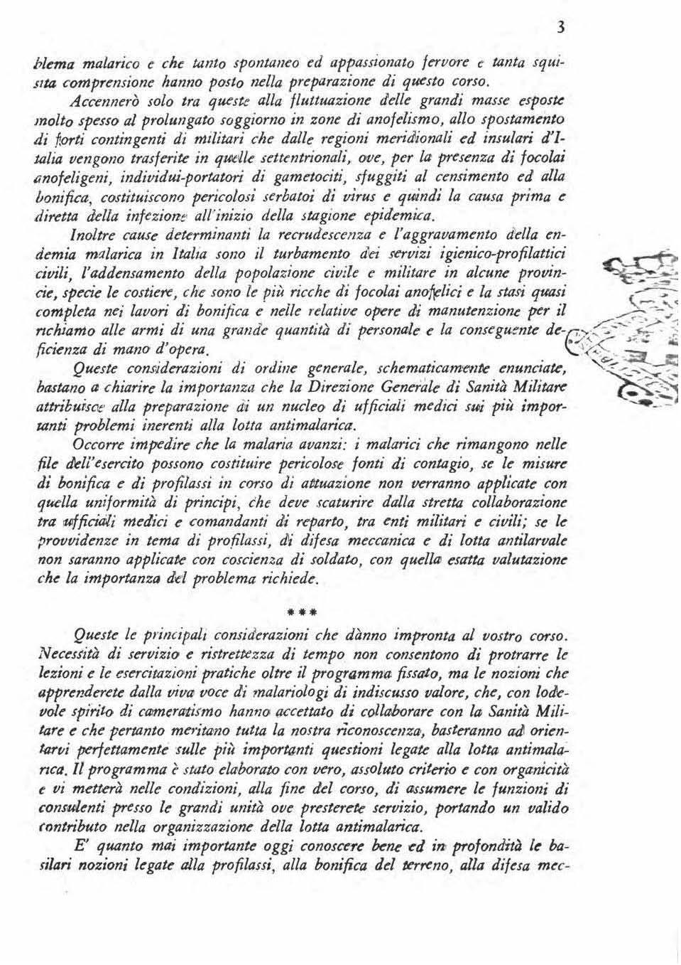 hastano a c hiari re la importanza che la D irezione Generale di Sanità attribuÙCit' alla preparazione cii un nucleo di ufficiali medici sui più imporumti problem i inerenti alla lotta antimalan'ca.