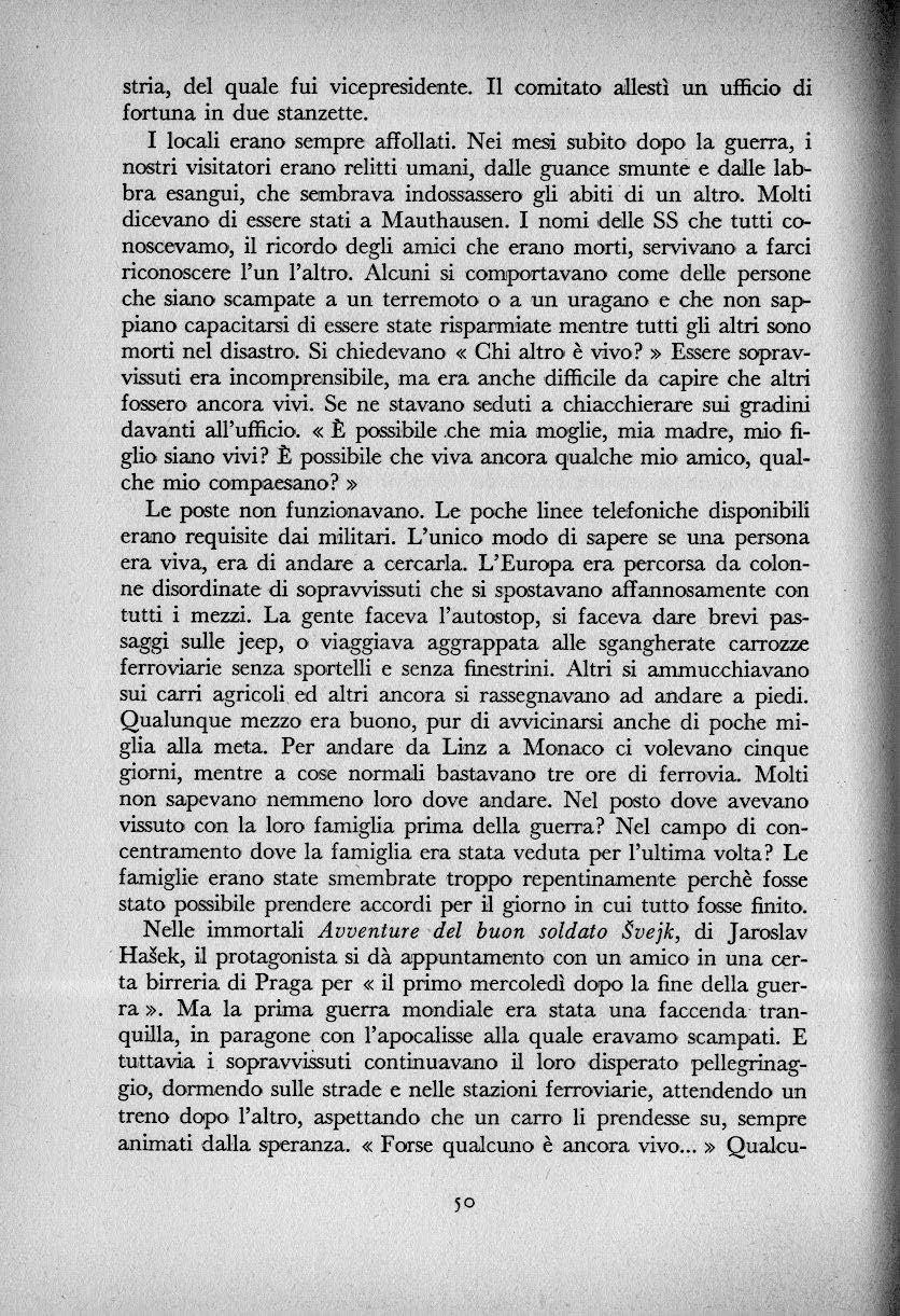 « Molte persone liberate dai campi di concentramento reagirono in maniera diversa. Avevano bisogno di dimenticare per poter tornare a vivere. Perciò si chiusero in una corazza protettiva, cercando con tutte le loro forze di non pensare a ciò che era sucresoo.