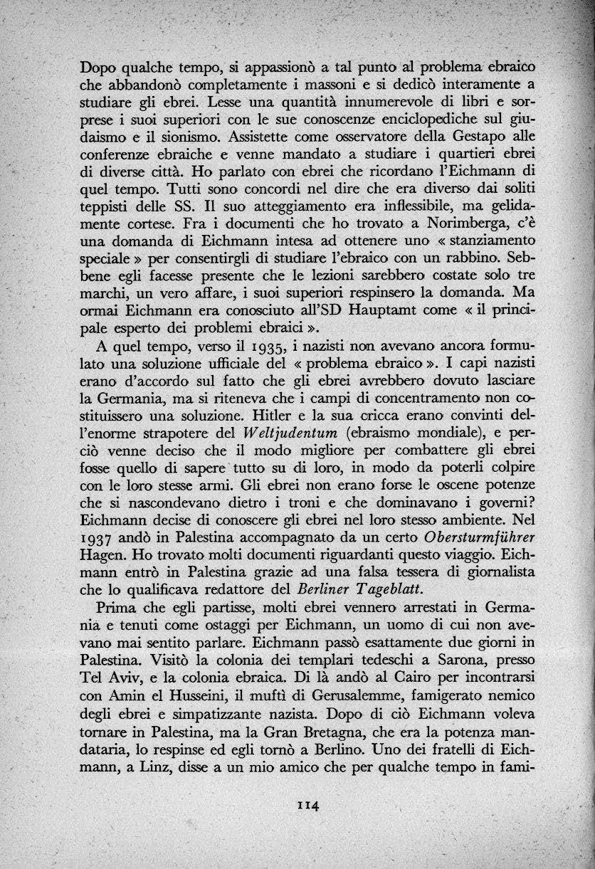 « Un ebreo che crede in Dio e nel suo popolo non crede nel principio della responsabilità collettiva, » egli dice. « Noi ebrei non abbiamo forse sofferto per migliaia di anni perchè si diceva che eravamo collettivamente colpevoli - tutti noi, compresi i bambini non ancora nati - della crocifissione di Cristo, delle epidemie del Medioevo, del comunismo, del capitalismo, delle guerre disgraziate, dei disgraziati trattati di pace? Tutti i mali del genere umano, dalla peste alla bomba atomica, sono <colpa degli ebrni >. Noi siamo l'eterno capro espiatorio. Noi sappiamo di non essere colpevoli collettivamente; perciò, come possiamo accusare un'altra nazione, qualsiasi cosa abbia fatto una parte dei suoi membri, di essere collettivamente responsabile? »