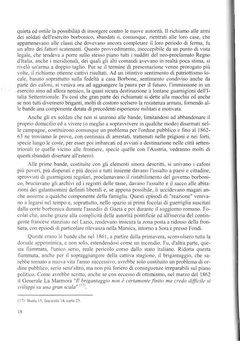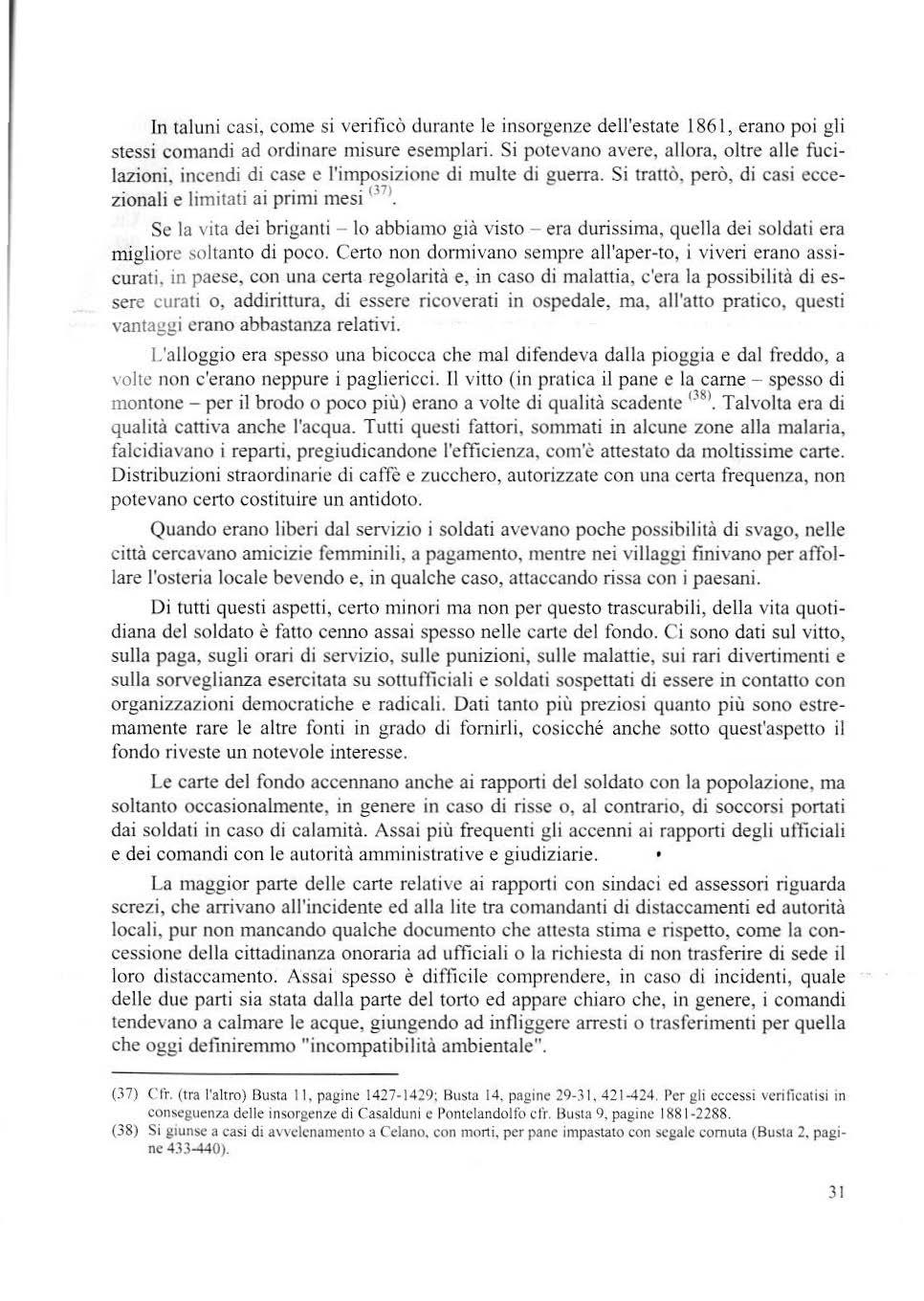 Ma neppure i documenti di tutti i fondi ora citati potrebbero essere sufficienti a spiegare da soli, in manie ra esauriente, tutti i di ve rs i aspe tt i del brigantaggio (specie quelli poli tico-sociali) possono , però, soprattutto quelli del nostro fo ndo, spiega rci come l'e se rcito abbia affrontato il difficile e del mtto inaspettato compito dell a ua repress ione.