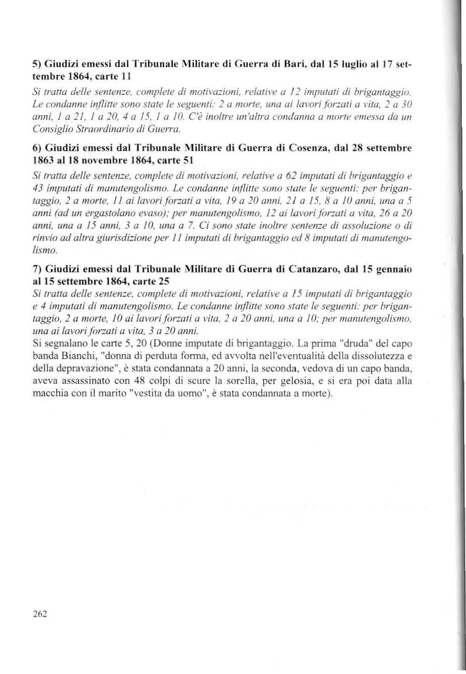 In oltre allo scopo di facilitare gli studiosi si è anche proceduto, quando è stato poss i bile , ad un inventario , ad un a statist ica, dei dati di ma ggior rilevanza rela tivi al brigantaggio.