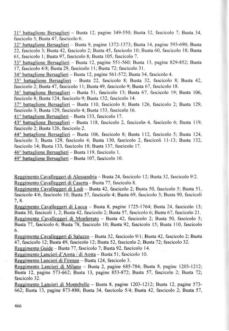 2 ° battaglione Bersaglieri - Busta 9 , pagine 89 1- 894 ; Busta 12 , pa g ine 1-48 ; Busta 29. fascicolo 9 ; Busta 34, fascicolo 2 ; Bus ta 47 , fa s cicolo 6; Busta 49 , fa s cicolo IO ; Busta 67 , fascicolo 14