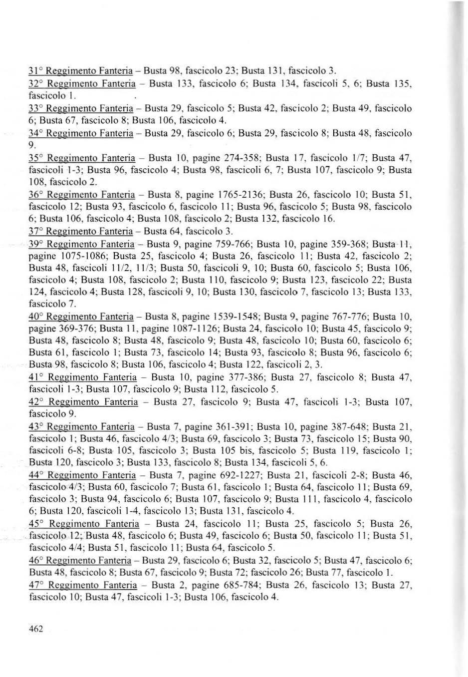 61 ° Regg im e nto Fa nteria - Busta 2 , pagine 879- 892; Busta 9, pagine 777-784; Busta I l, pagine 130 1-14 14 ; Busta 29, fascico lo 7; Bus ta 32 , fa scico lo 6; Busta 33, fa s cico lo 8; Bus ta