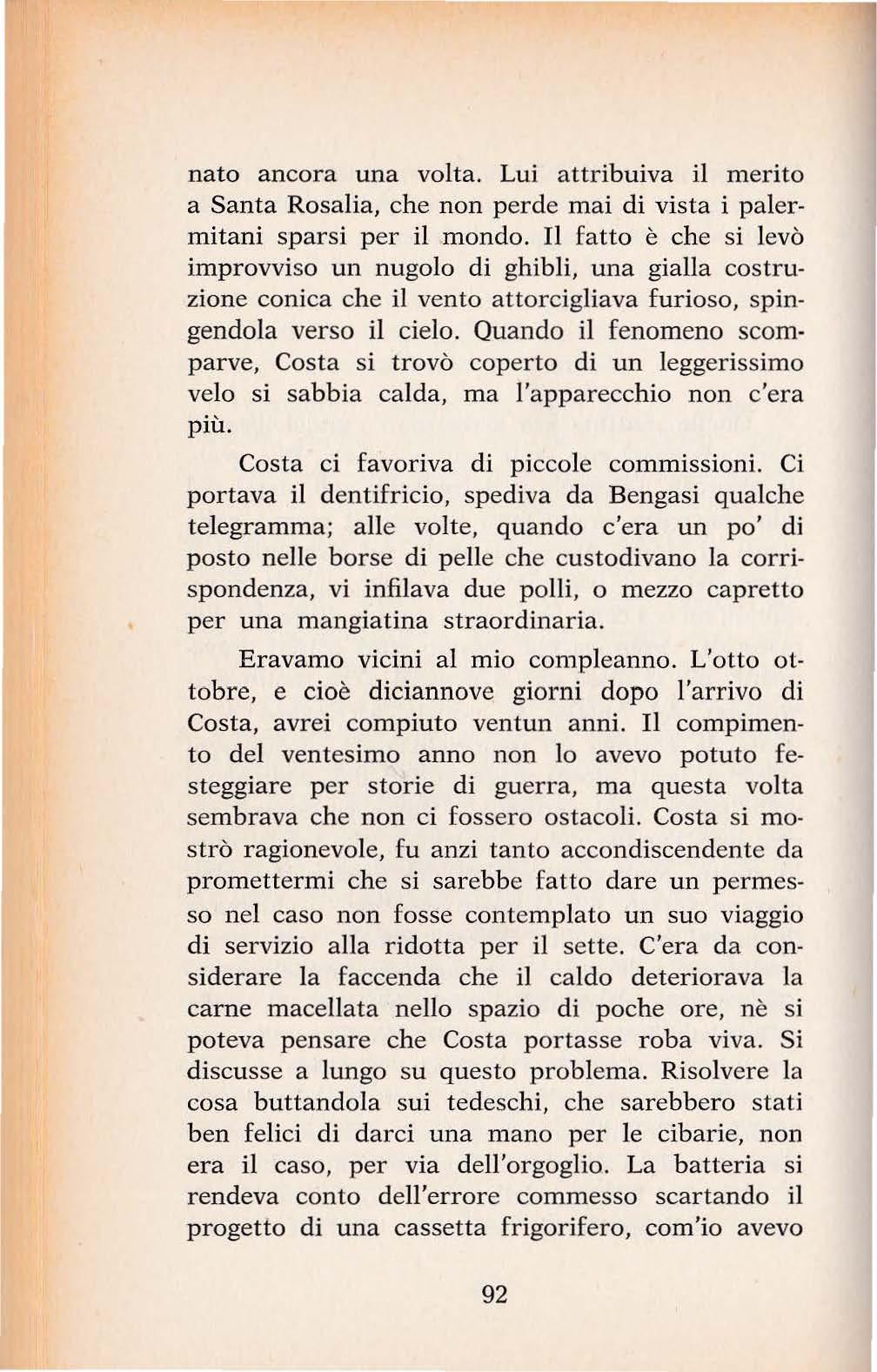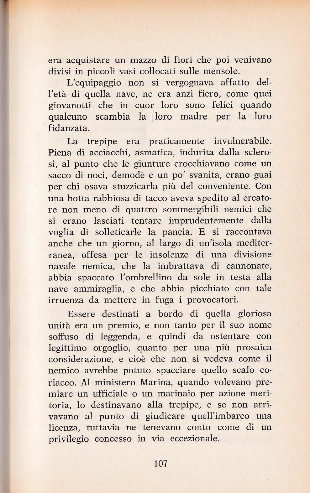 In tre anni di guerra avevo conosciuto molti marinai, di m o lti avevo ancora presente il volto. una particol are cadenza de lla voce. Tre anni di guerra tra scorrono tra fatti, piccoli episodi, incontri, s torie comuni; una data, una città, una n ave, una b a tteria sono u n momento che si fissa nella memoria, che crea un r iferimento, il ricordo di una confidenza. E m e ntre cancellavo il nome d e lle navi affondate dal nemico, mi ricordavo di qualcuno di quei volti, una parola scambiata, un sentimento e mi ch iedevo , chissà se vive ancora?