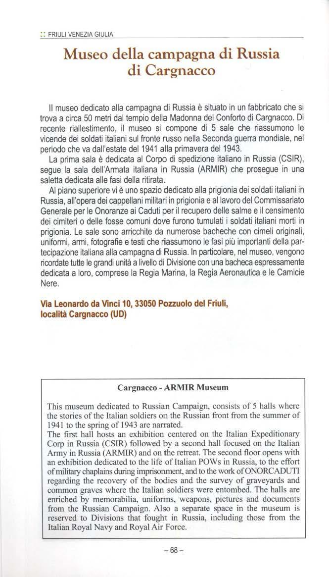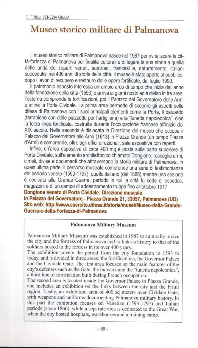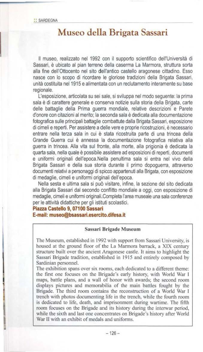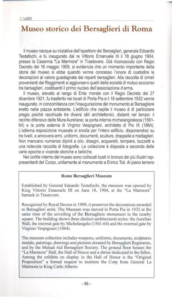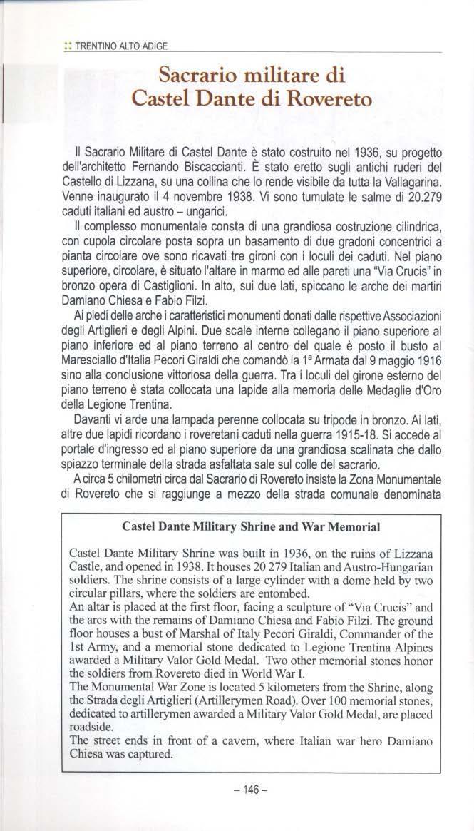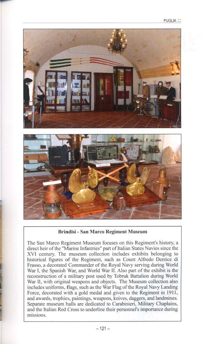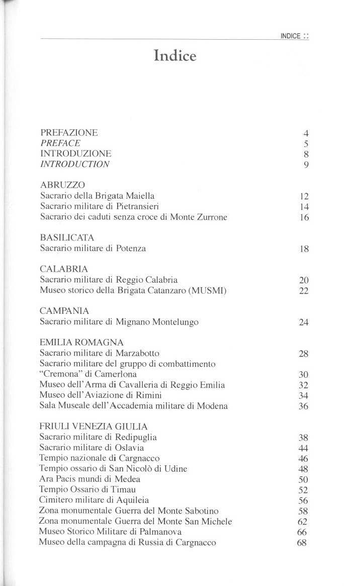 This is why military Memorials and Museums are meaningful places: the farmer were established to honor the sacrifice and bury the fallen who died far the independence andfreedom ofthe ltalian people; the latter tell the history of the military worU, which has always marched shoulder to shoulder with the lift of the country.
