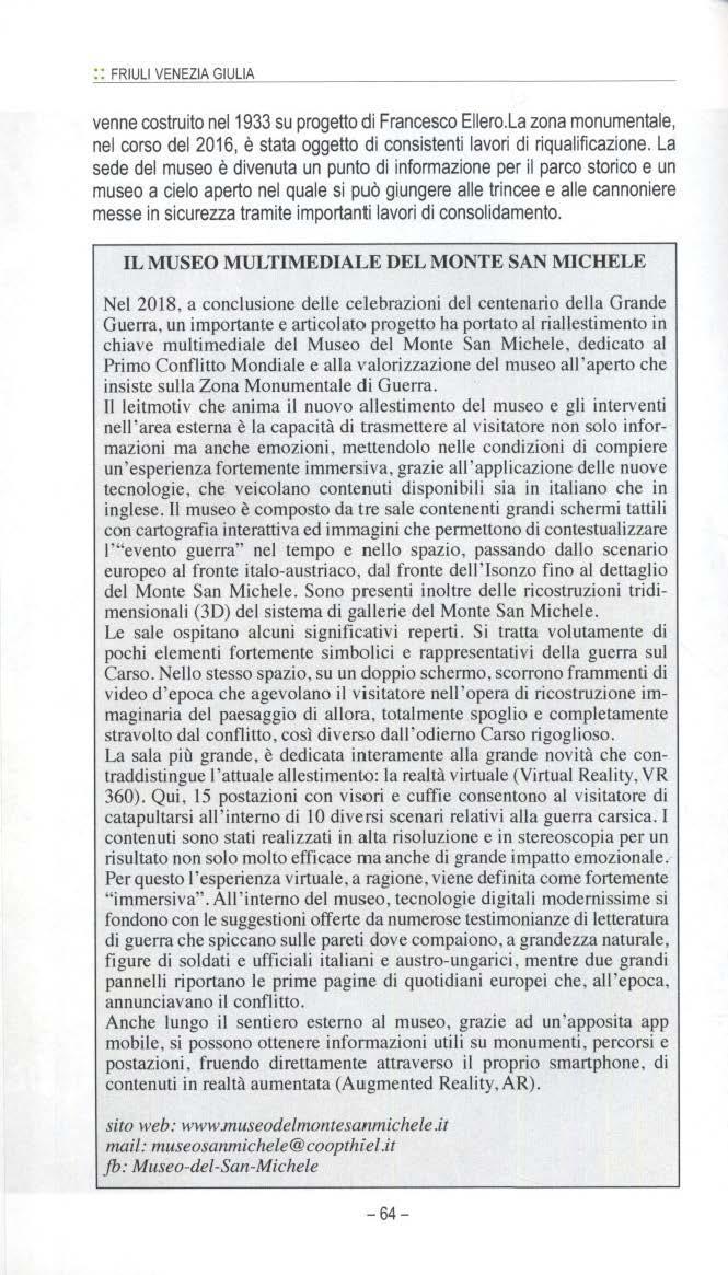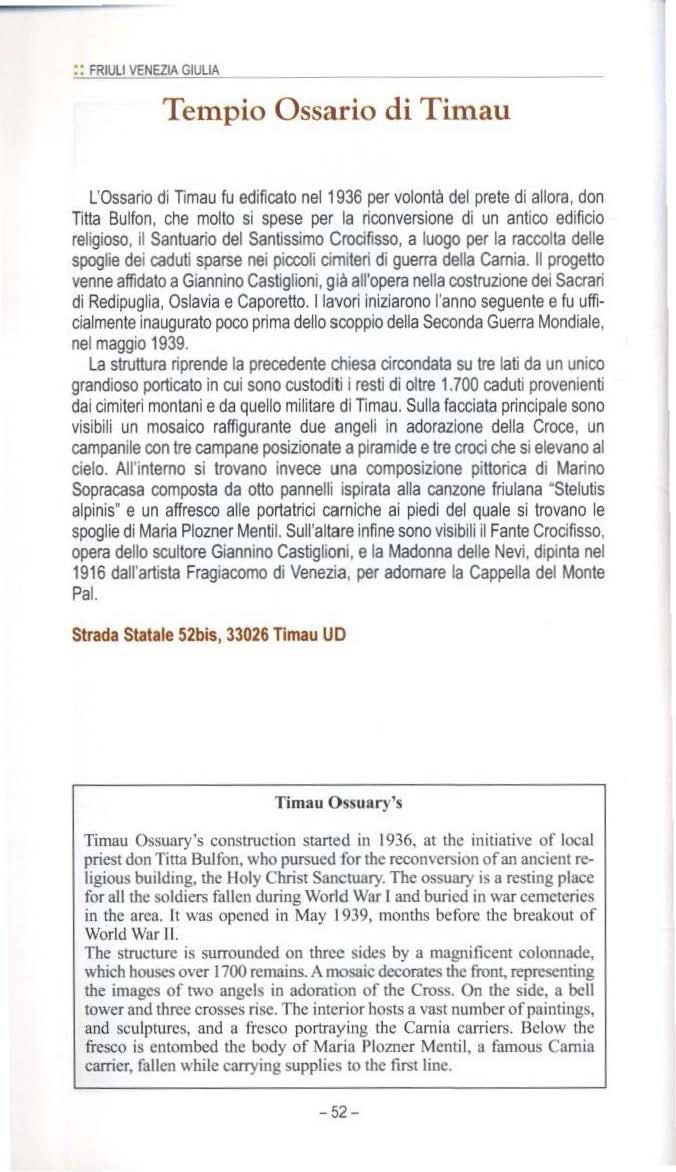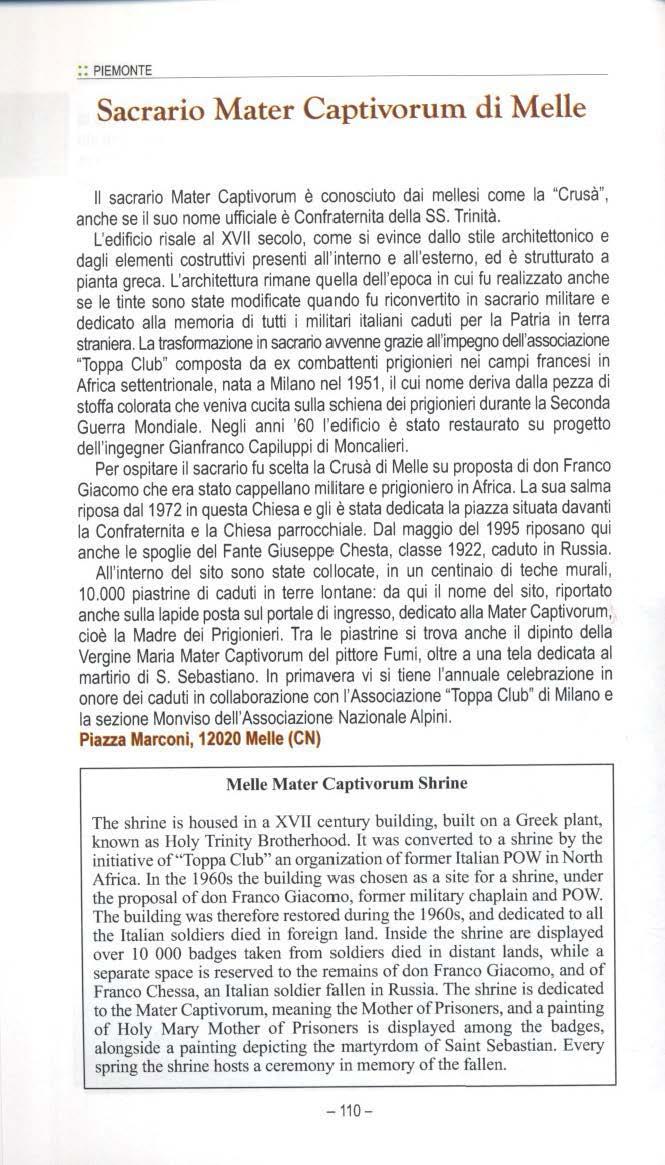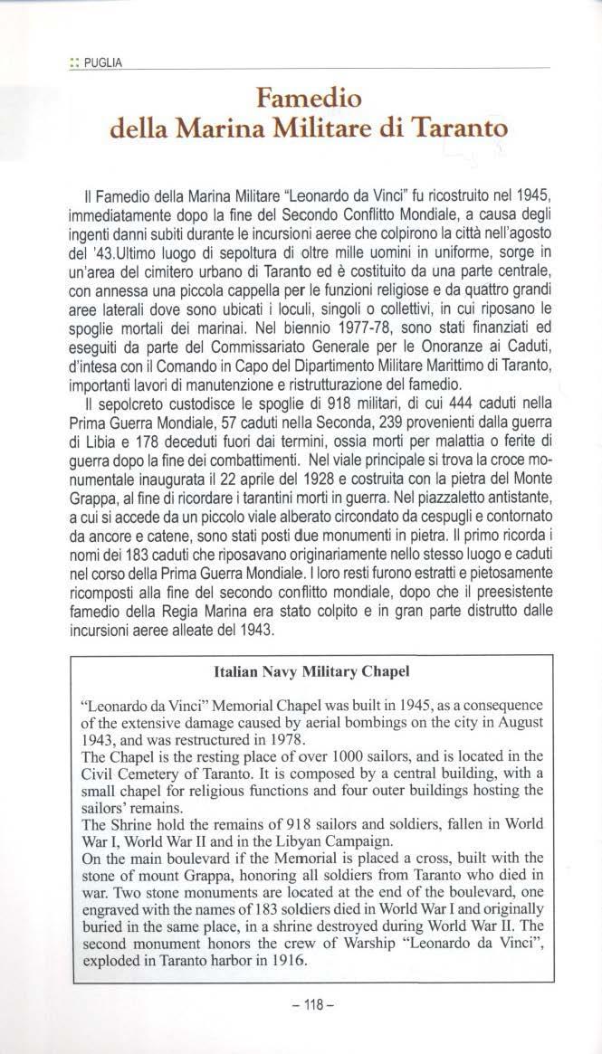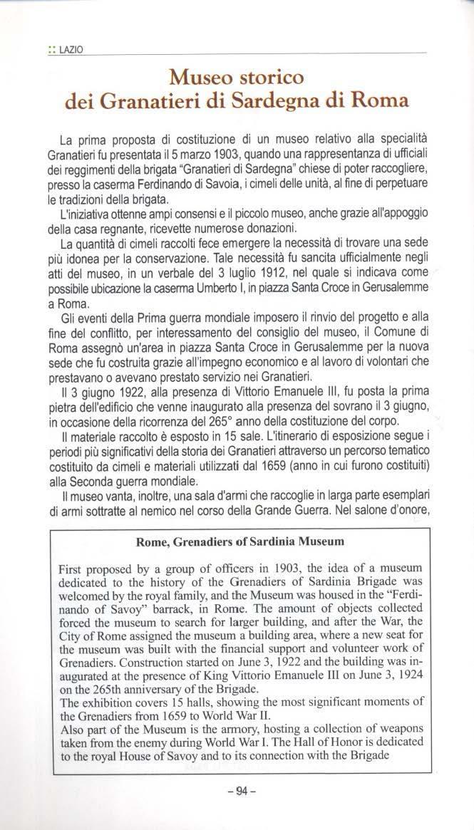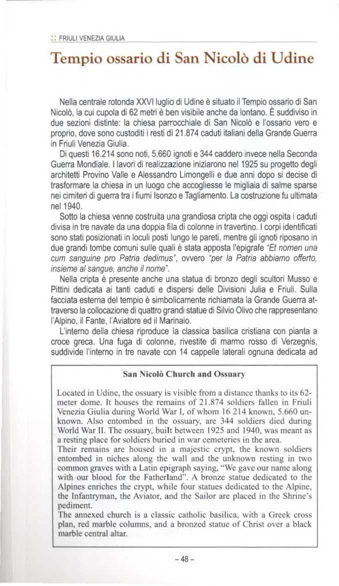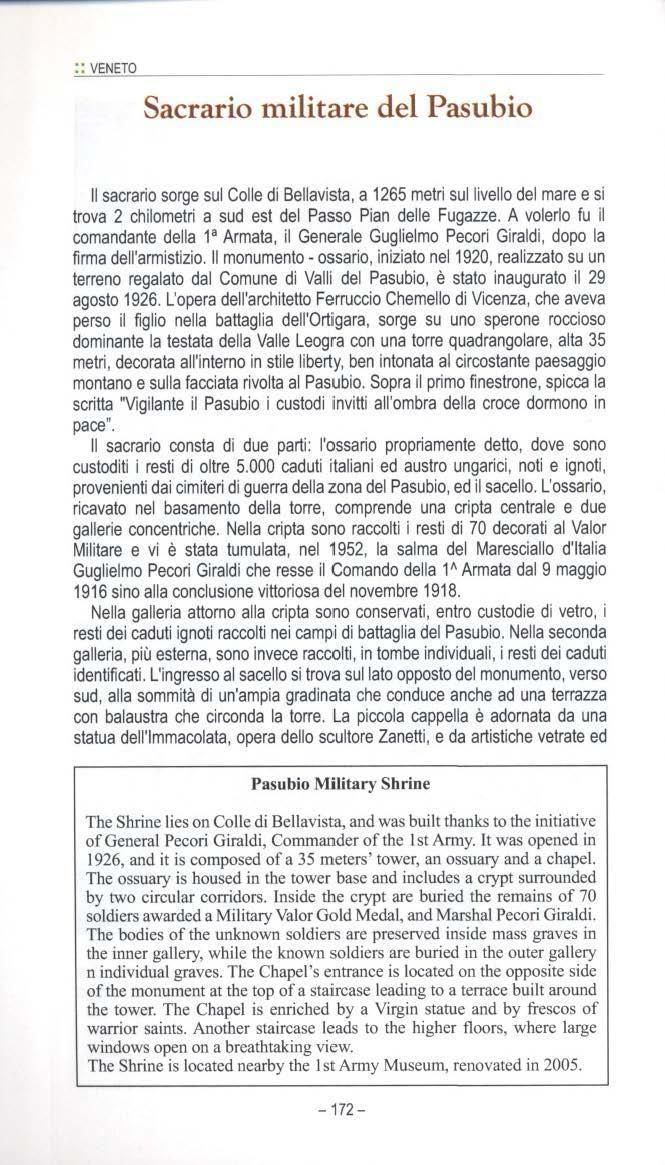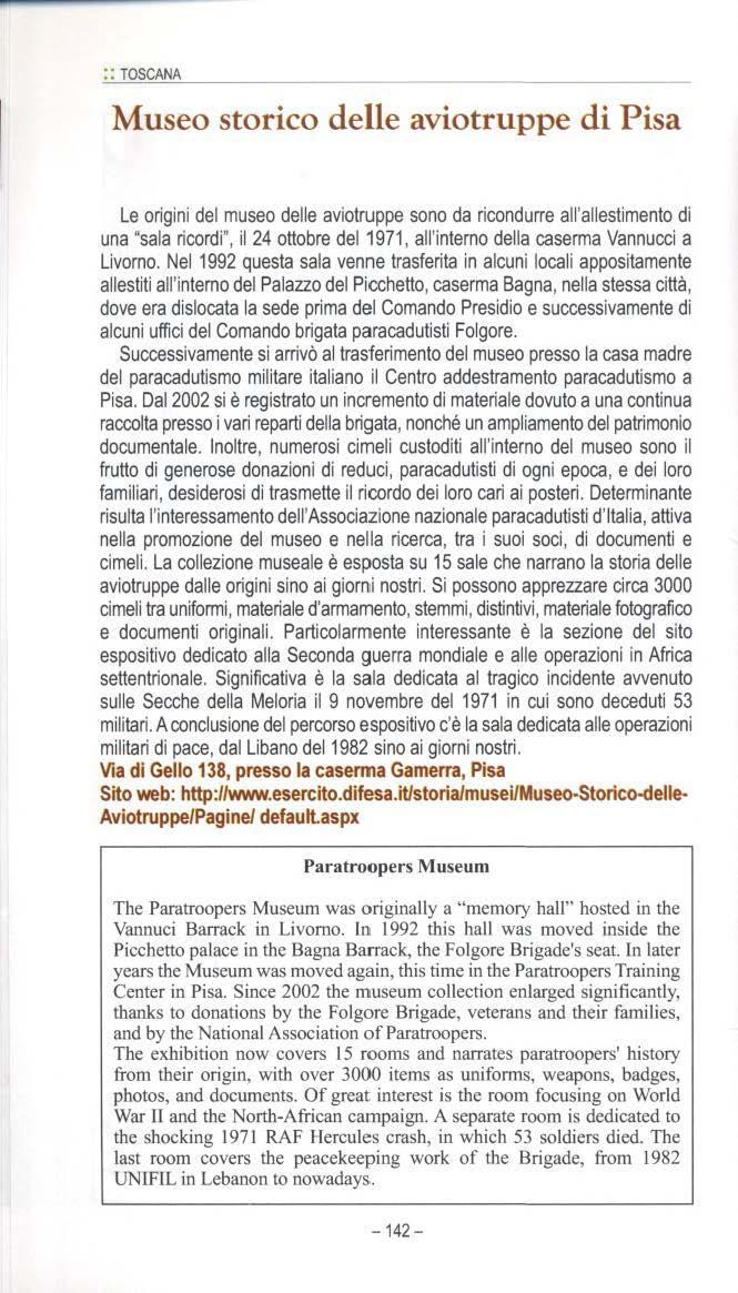 This is why military Memorials and Museums are meaningful places: the farmer were established to honor the sacrifice and bury the fallen who died far the independence andfreedom ofthe ltalian people; the latter tell the history of the military worU, which has always marched shoulder to shoulder with the lift of the country.
