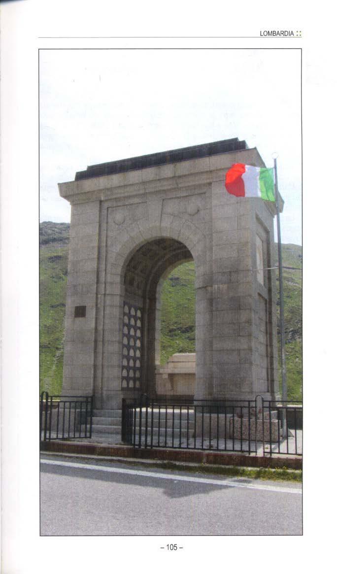 Disegnato dall 'architetto fiorentino En rico Miniati, il sacrario presenta una costruzione conica in pietra sulla quale poggia una maestosa croce luminosa di 14 metri donata dalla gente di Toscana. Ai piedi della scala di accesso al piazzale del sacrario, su un masso di roccia del Gottardo , si trova l'iscrizione: 'Se curiosità o fede quassù t'abbiano spinto rispetto e silenzio dona a questo luogo di Sacre Memorie. Qui le mortali disperse spoglie di 145.000 soldati d'Italia ovunque caduti per la Patria ri posano nei loro nomi immortali".