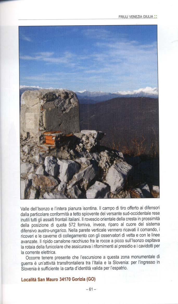 Mount Cengio was the last defensive position for the l talian Army during the Austro-Hungarian offensive of spring 1916 and was kept tbanks to the sacrifice of IO 000 men , mosrly Gre nadicrs ofSardin ia, and infantrymcn from Catanzaro, Novara, Trapani and Modena . Their sacrifice prevemed the encirc lemen t of the 2nd and 3rd Anny, stationcd in the plain on the lsonzo river. Mount Cengio is one ofrhc most interesting sites ofthe area, and it offers the opportunity to combine an easy clirnb on a mountaintop with a breathtaking view, with the visit to an historicalty relcvant site. Particularly interestiog for vis itors is the "Granariera" path, a mule track used by the ltatian Army.