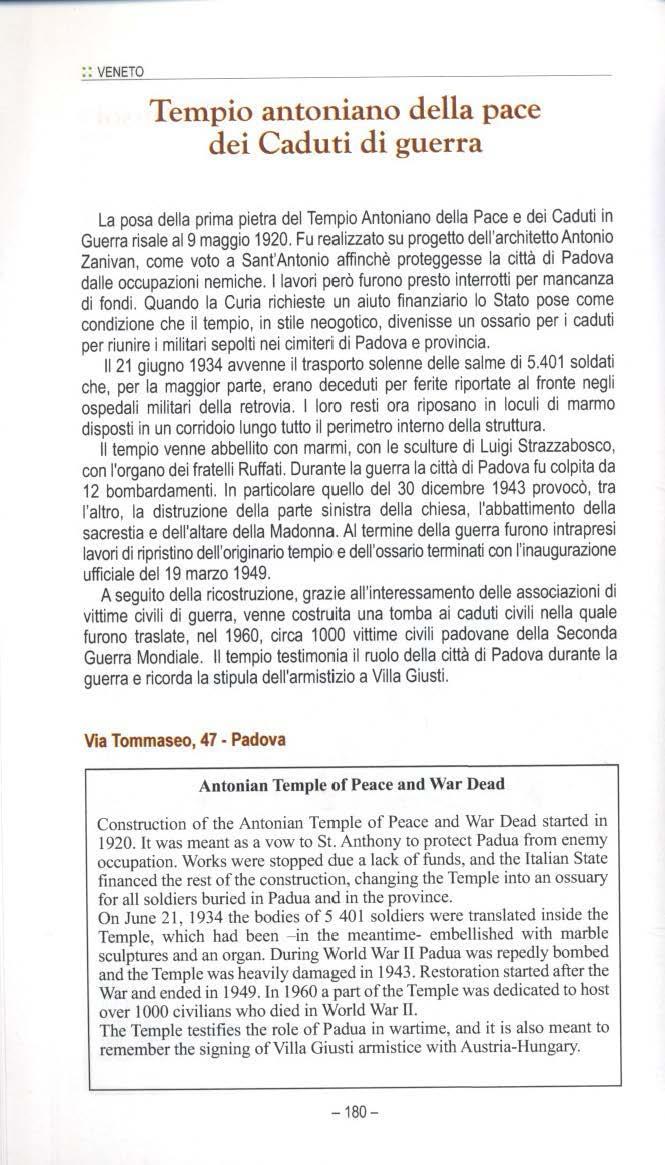 The Temp ie testifies tl1e rote of Padua in wartirne, and it is also meant to rcmember the sign ing ofVi ll a Giusti armistice with Austria-Hungary.