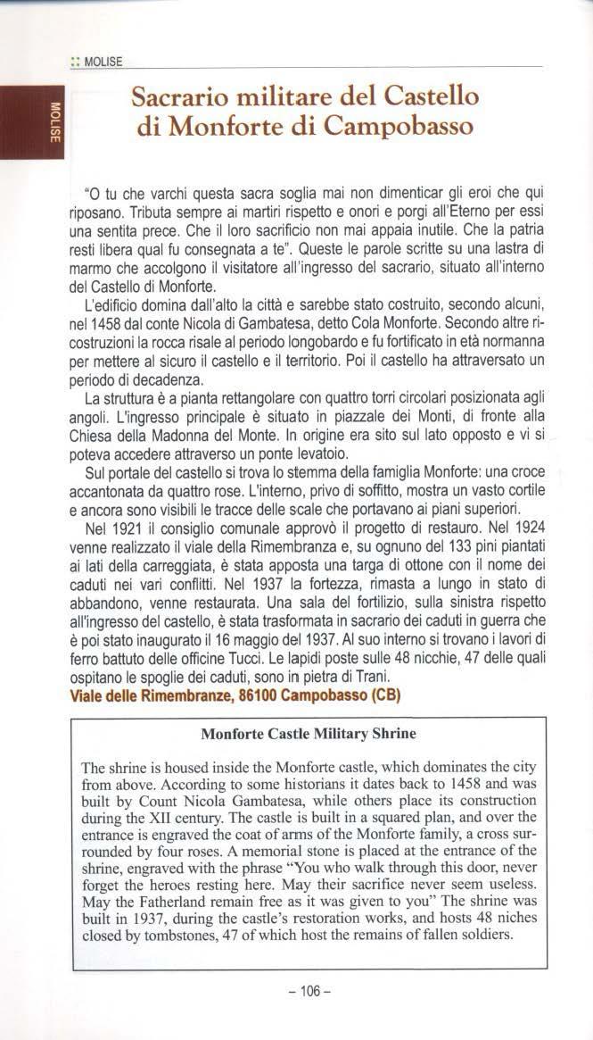 Il libro, aJ quale il Commissariato Generale ha attivamente conrribuito, costituisce un importante strumento di valorizzazione favorendo, attra~rso una lerrura agile e dinamica, un più ampio avvicinamento di questi Luoghi simbolo ad un pubblico sempre più vasto ed eterogeneo.