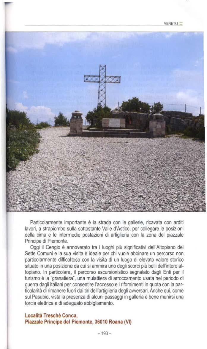 Particolannente importante è la strada con le gallerie, ricava ta con arditi lavori , a strapiombo sulla sottostante Valle d'Astico, per collegare le posizioni della cima e le intermedie postazioni di artigl ieria con la zona del piazzale Principe di Piemonte.