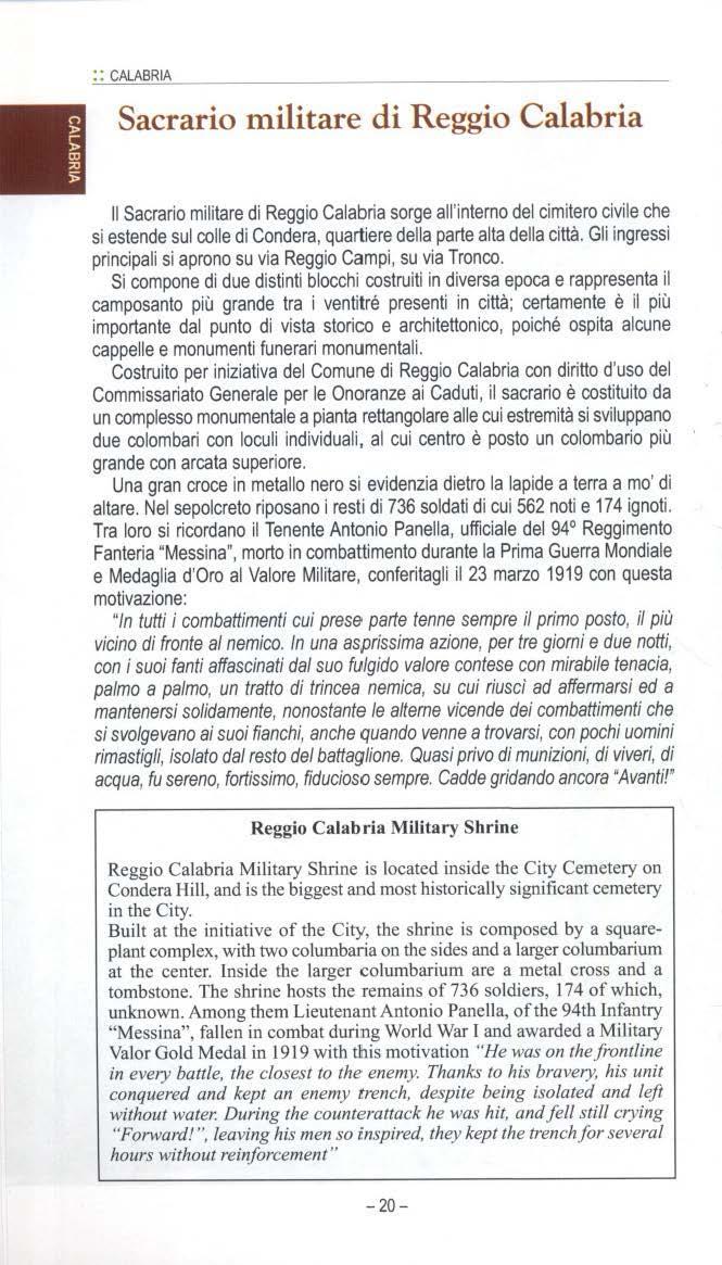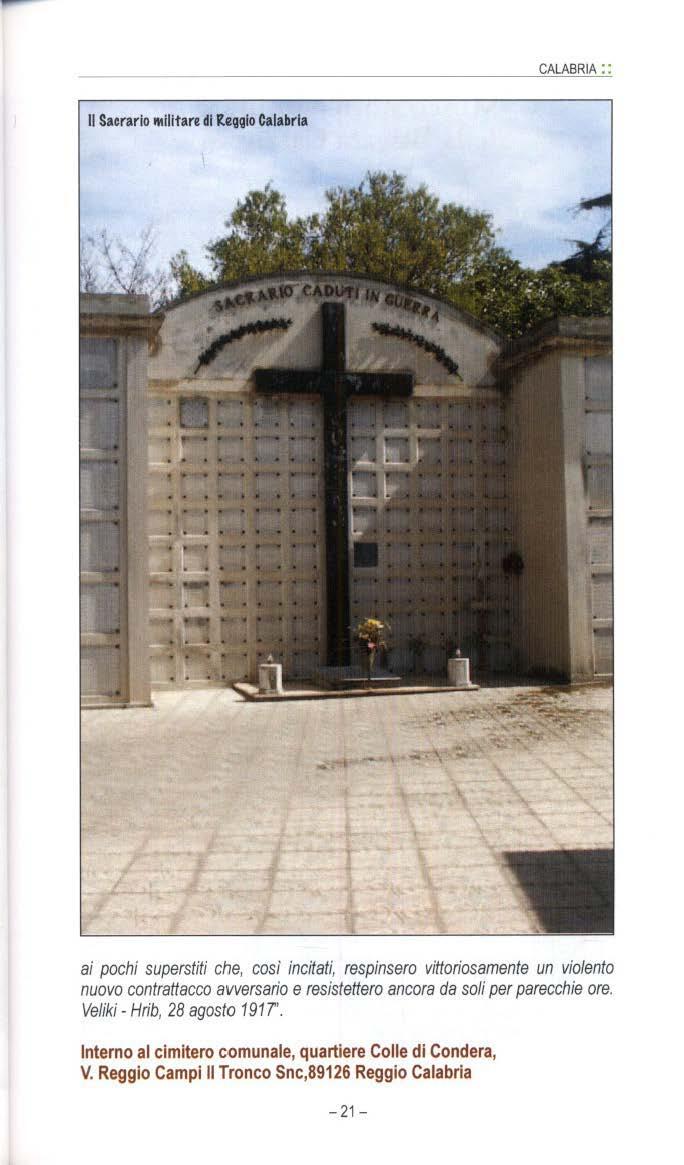 Reggio Calabria Military Shrine is locatcd inside the City Cemetery on Condera Hill, and is the biggest and most historically significant ccmetery in che City.