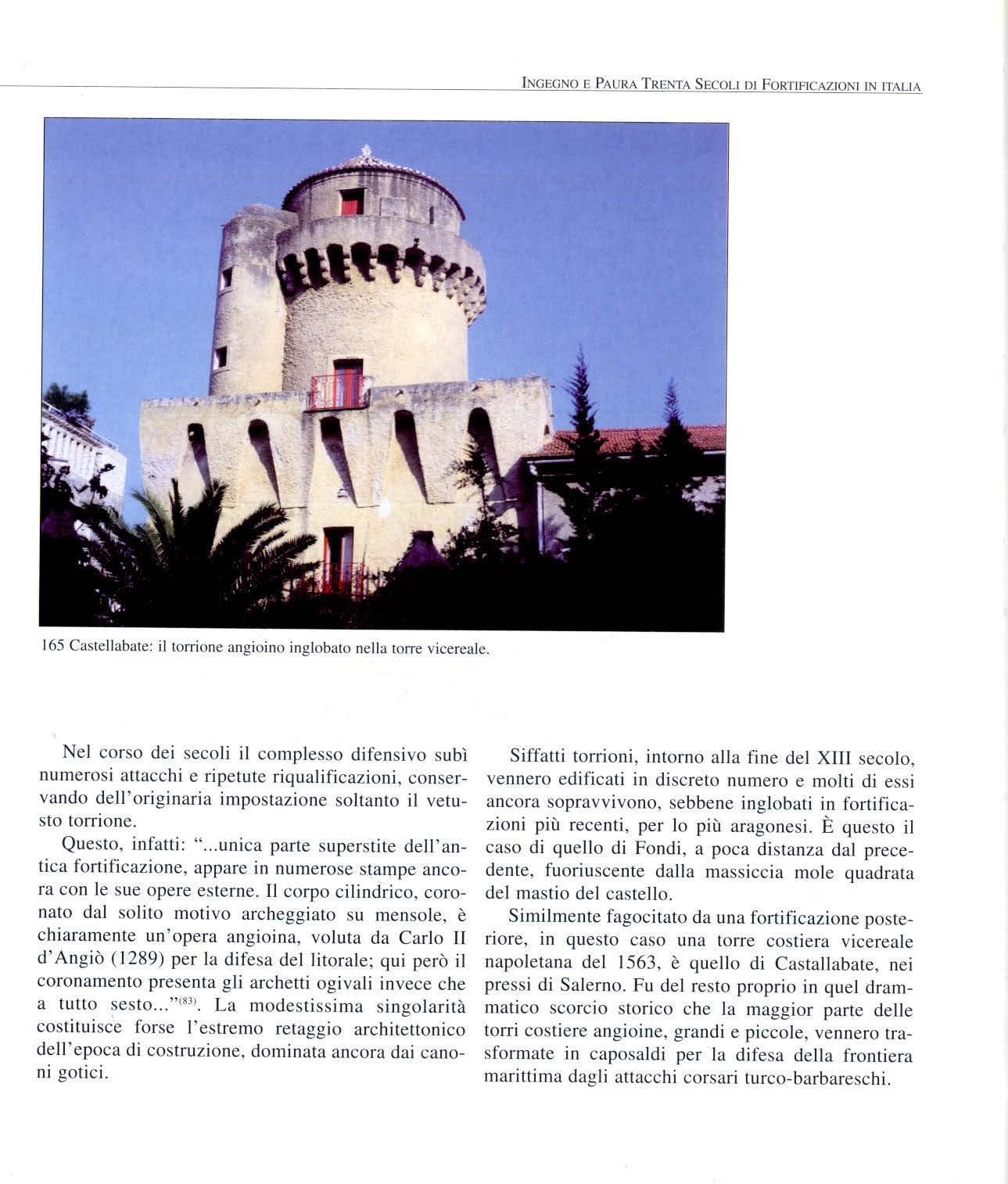 te delle descritte che, sebbene di modestissima aiticolazione e consistenza, meritavano più propriamente la definizione di castello. Disgraziatamente, però, quasi tutte quelle costruzioni a seconda che il sito d'impianto godesse di rilevanza strategica, o, al contrario rivestisse assoluta marginalità finirono ripetutamente aggiornate o radicalmente disgregate, impedendoci così una sia pur schematica descrizione tipologica. Soltanto i brandelli risparmiati ed inglobati nelle successive riqualificazioni consentono una vaga valutazione di tale evoluzione, come nel castello di Arechi che sovrasta il golfo di Salerno. Al riguardo va osservato che per la sua arroccatissima posizione, di per sè di straordinai'ia valenza ostativa, conservò, molto probabilmente, sostanzialmente inalterata la sua configurazione fin quasi al XV secolo, senza nemmeno allora perderla del tutto.